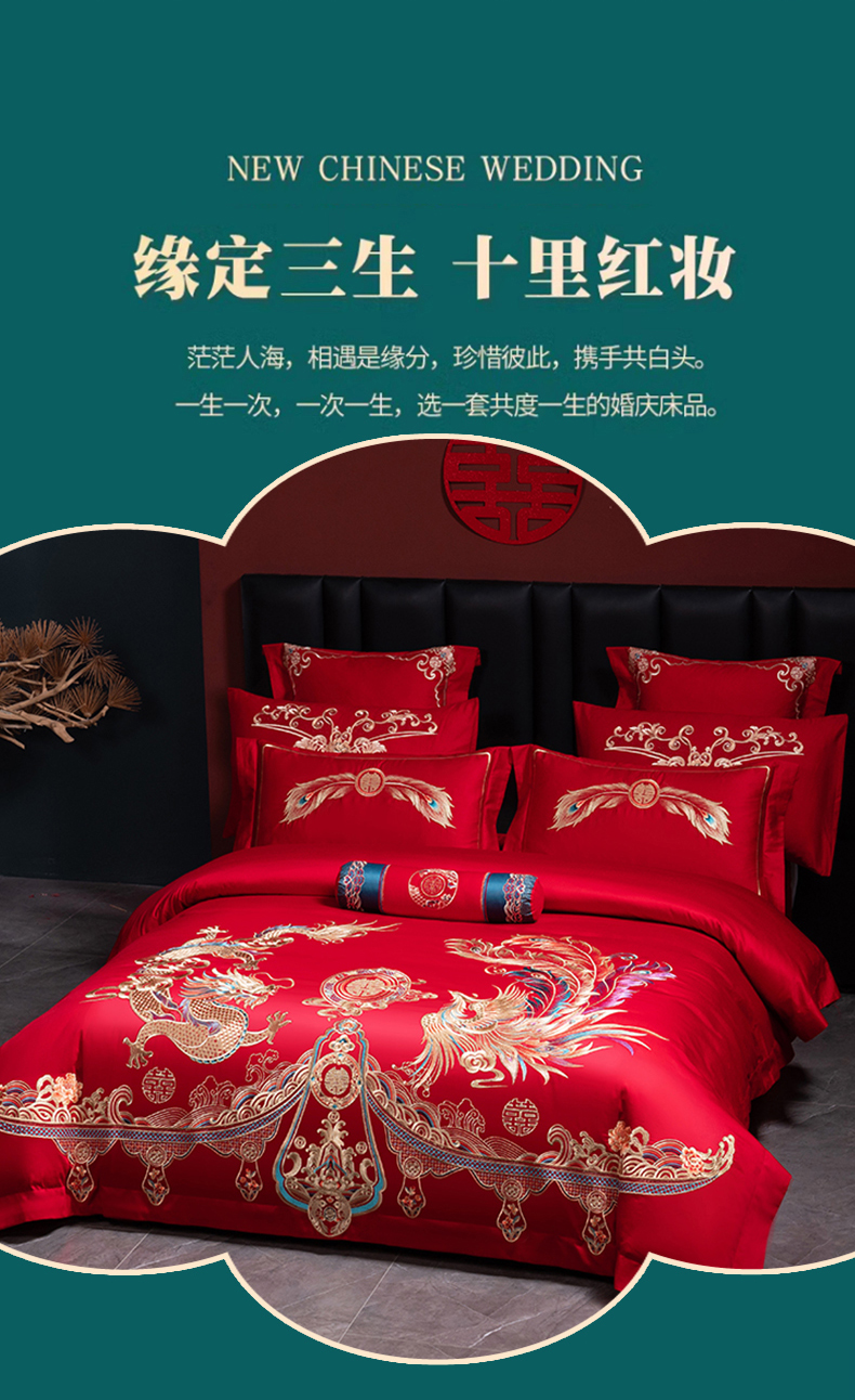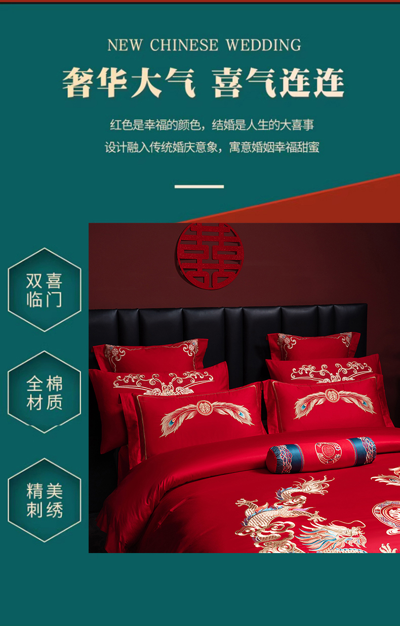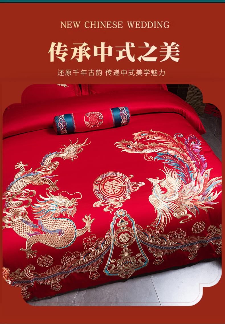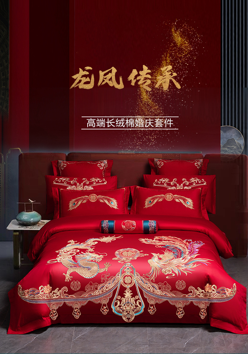 当前位置: 91家纺网 > 商品网购 > 床品套件 > 四件套 > 婚庆四件套 > 博之洋婚庆 2026新款全棉长绒棉刺绣婚庆四件套多件套 龙凤传承