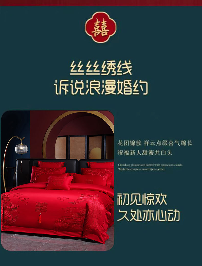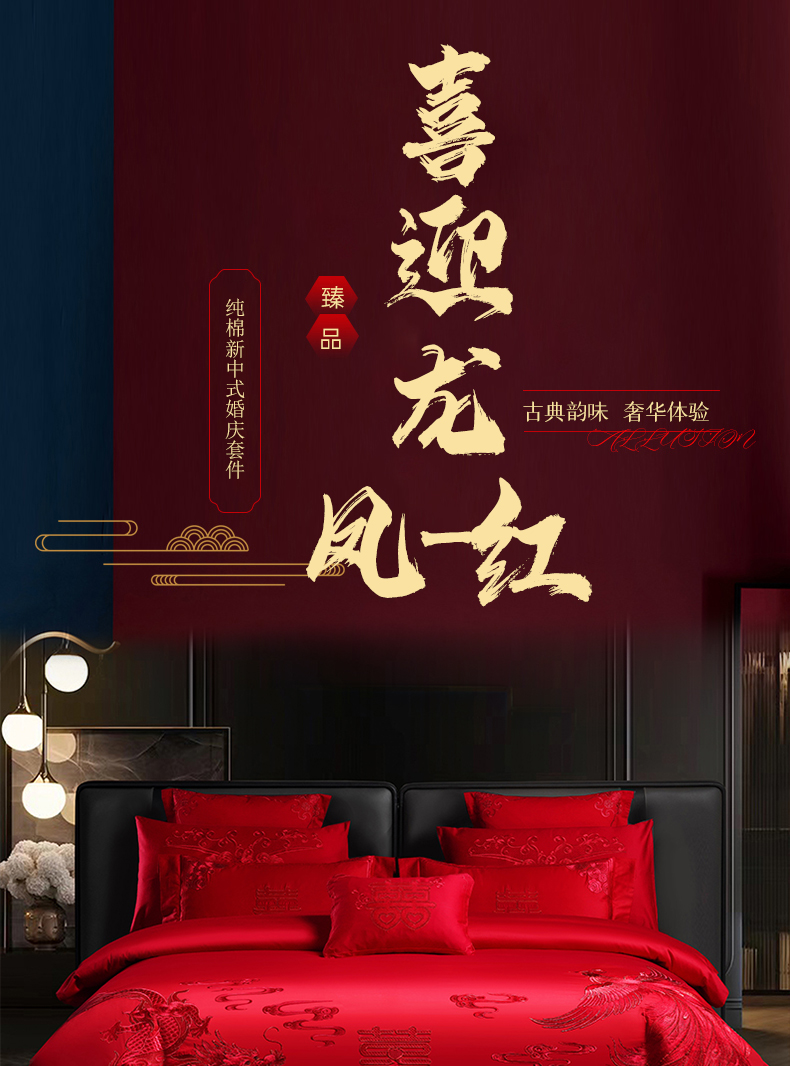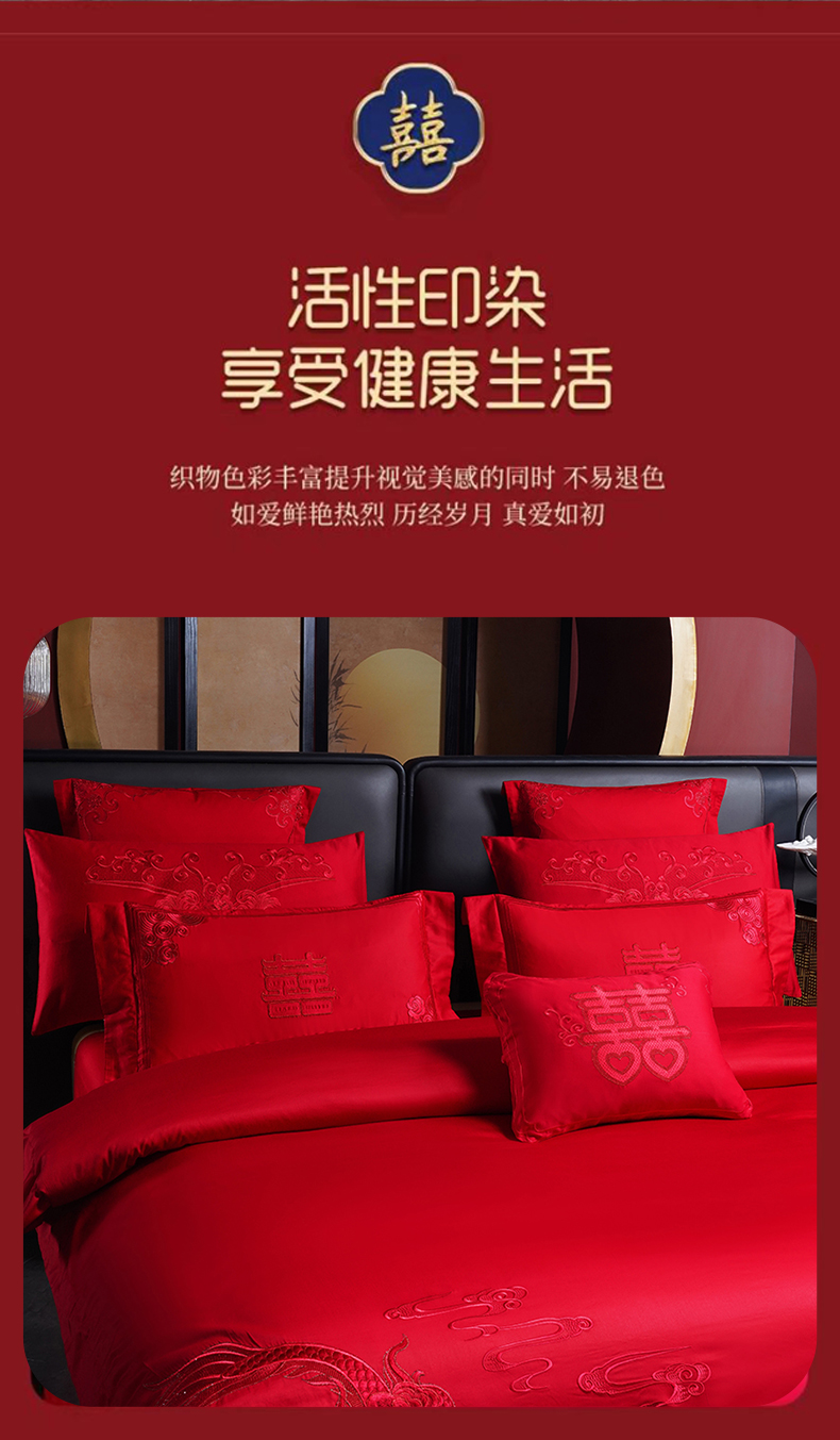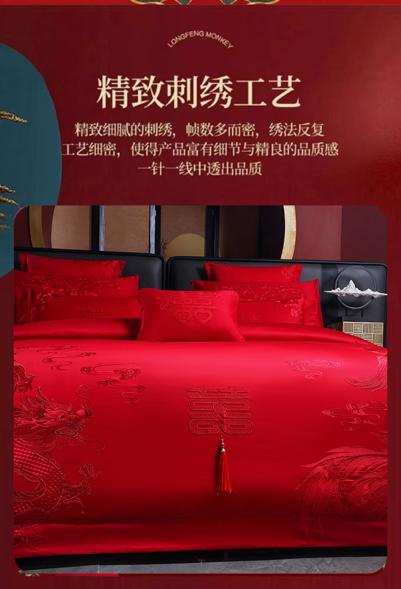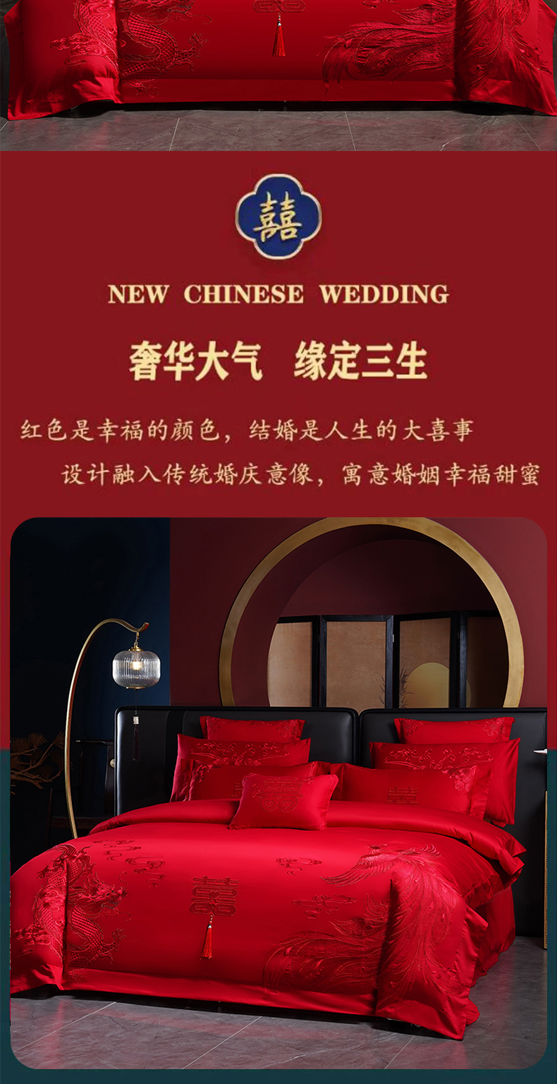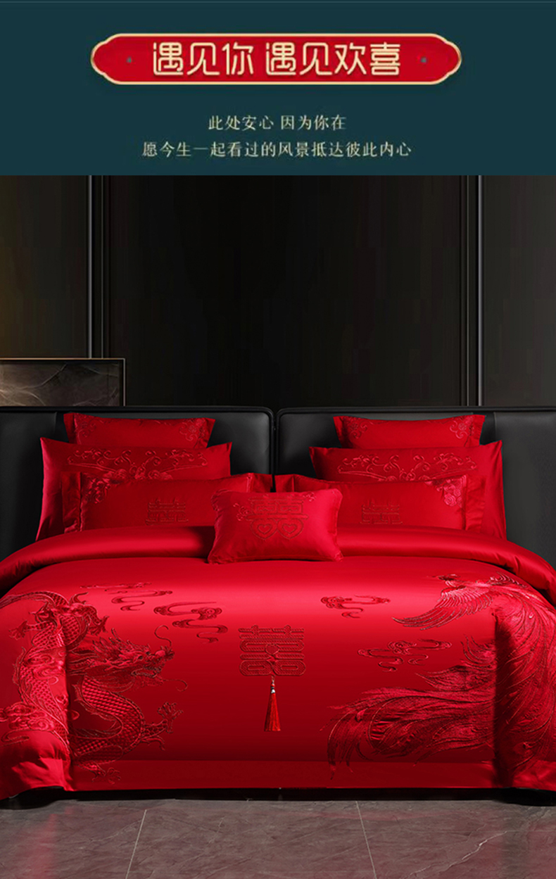 当前位置: 91家纺网 > 商品网购 > 床品套件 > 四件套 > 婚庆四件套 > 博之洋婚庆 2026新款全棉长绒棉刺绣婚庆四件套多件套 喜迎龙凤-红