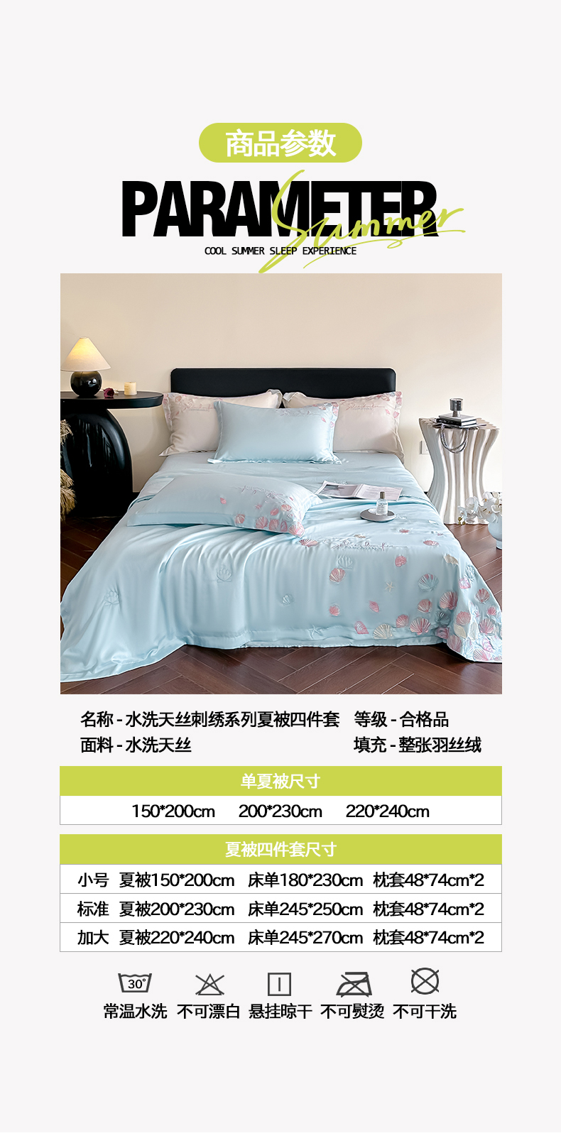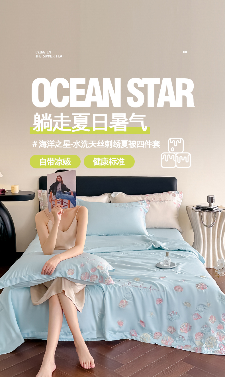 当前位置: 91家纺网 > 商品网购 > 床品套件 > 四件套 > 夏被四件套 > 置顶家纺 2026新款水洗天丝夏被四件套-海洋之星 海洋之星-天蓝