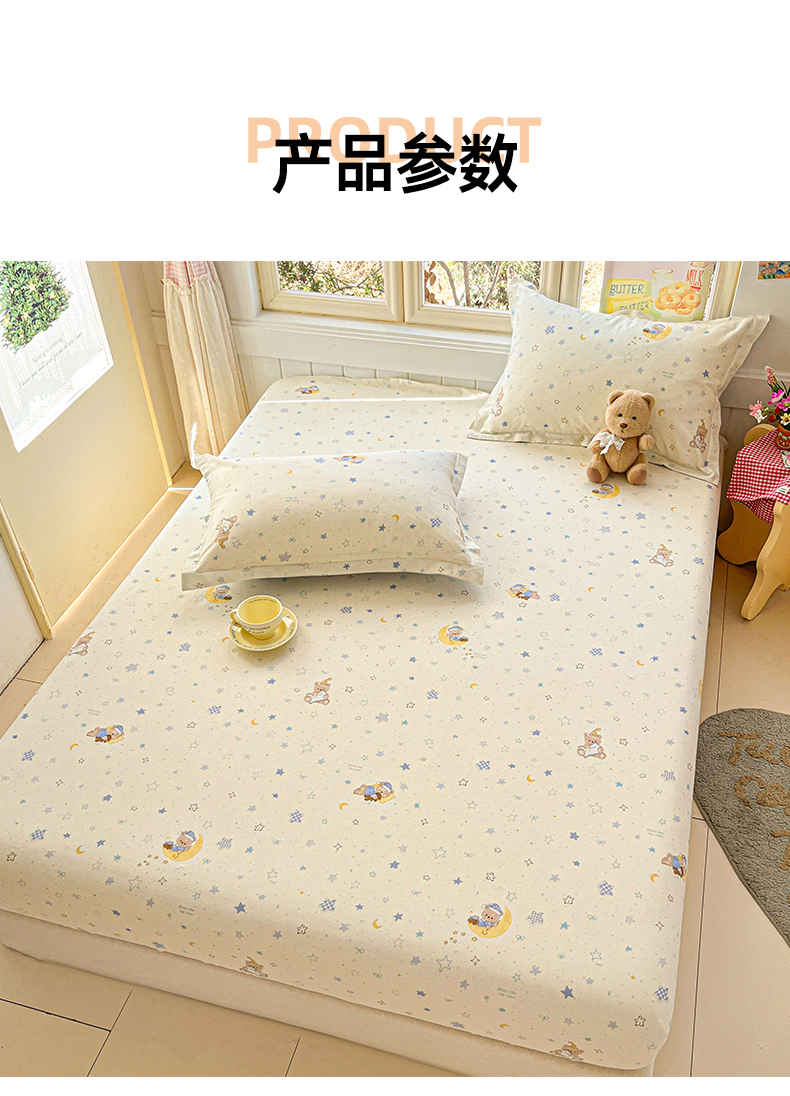 • 91家纺网 家纺一手货源 找家纺 莱通家纺 2026春夏新款12868全棉印花四件套单品系列二-单床笠 熊仔小汽车