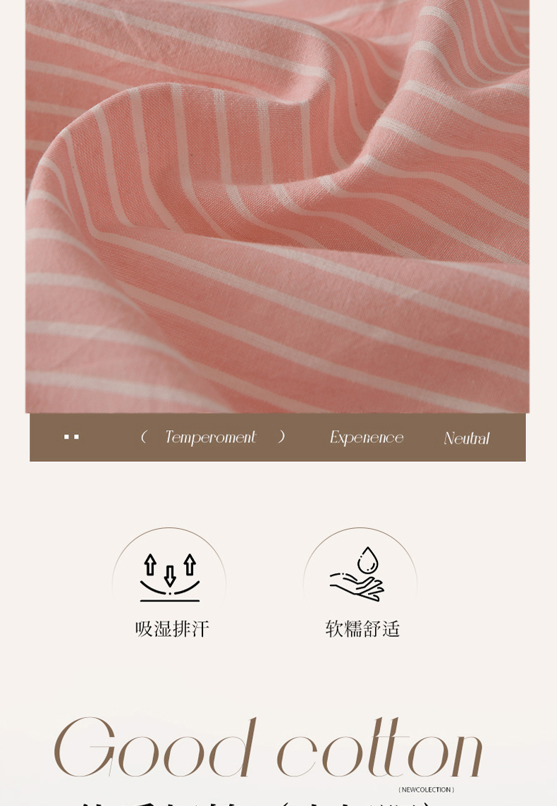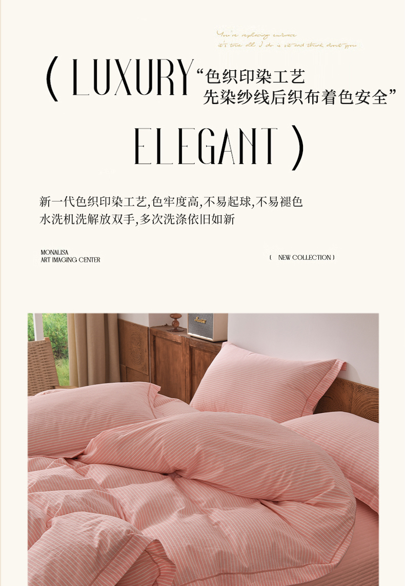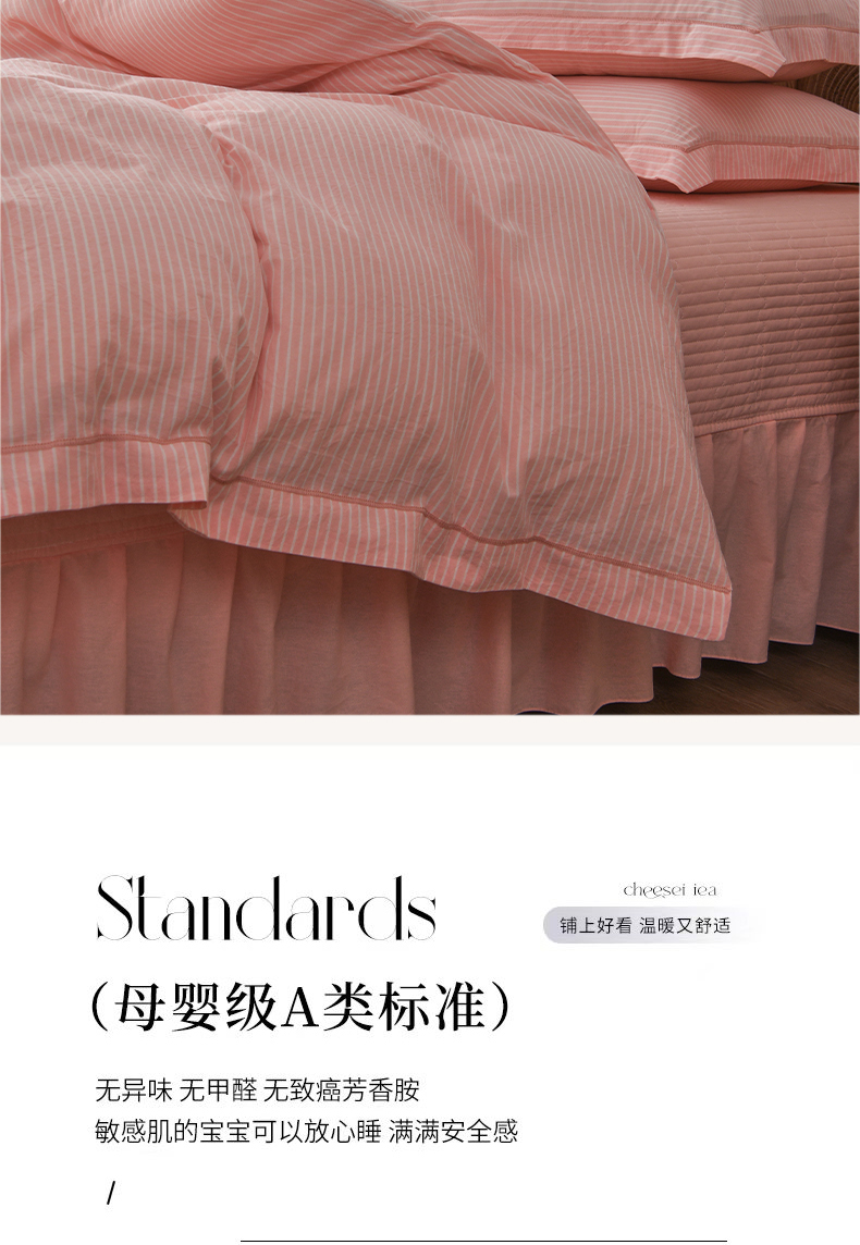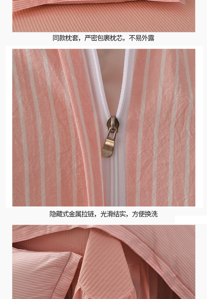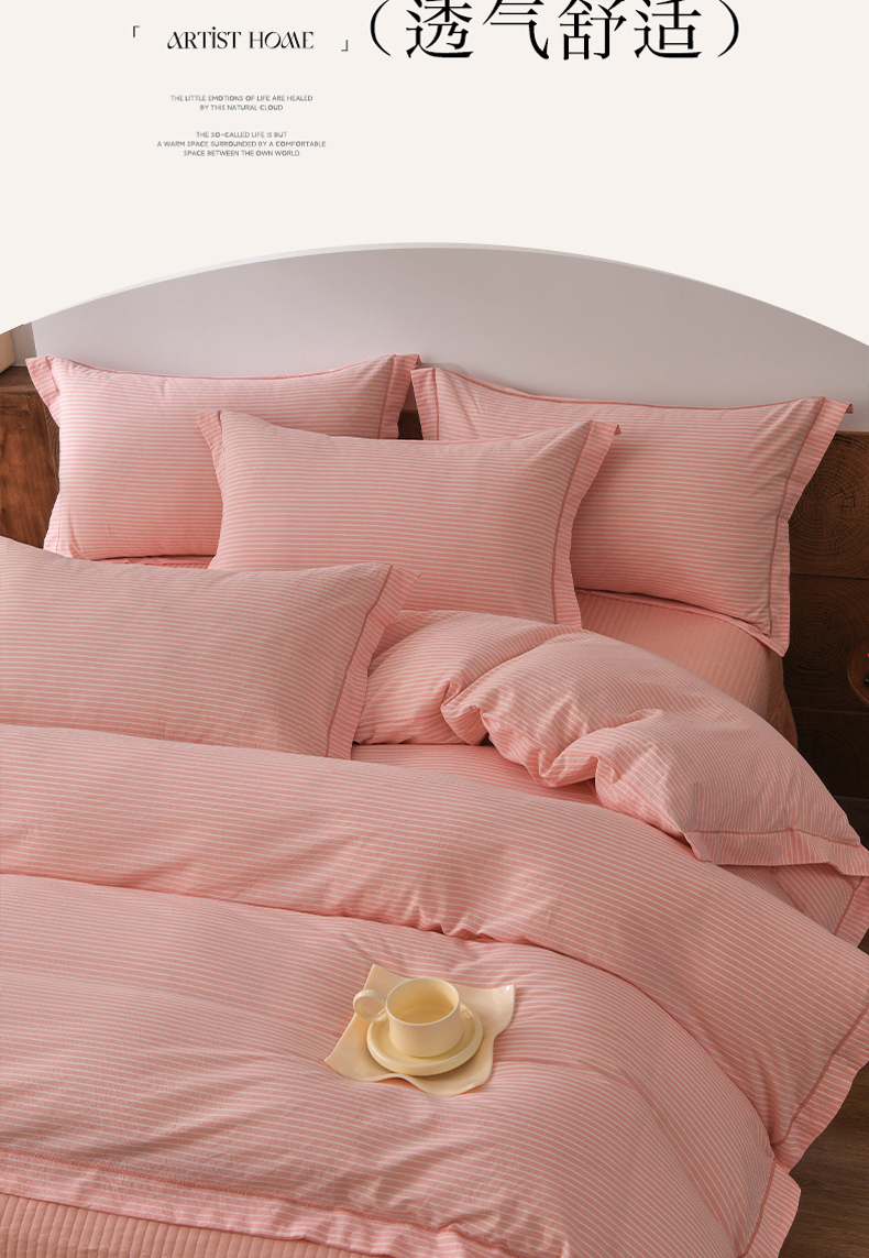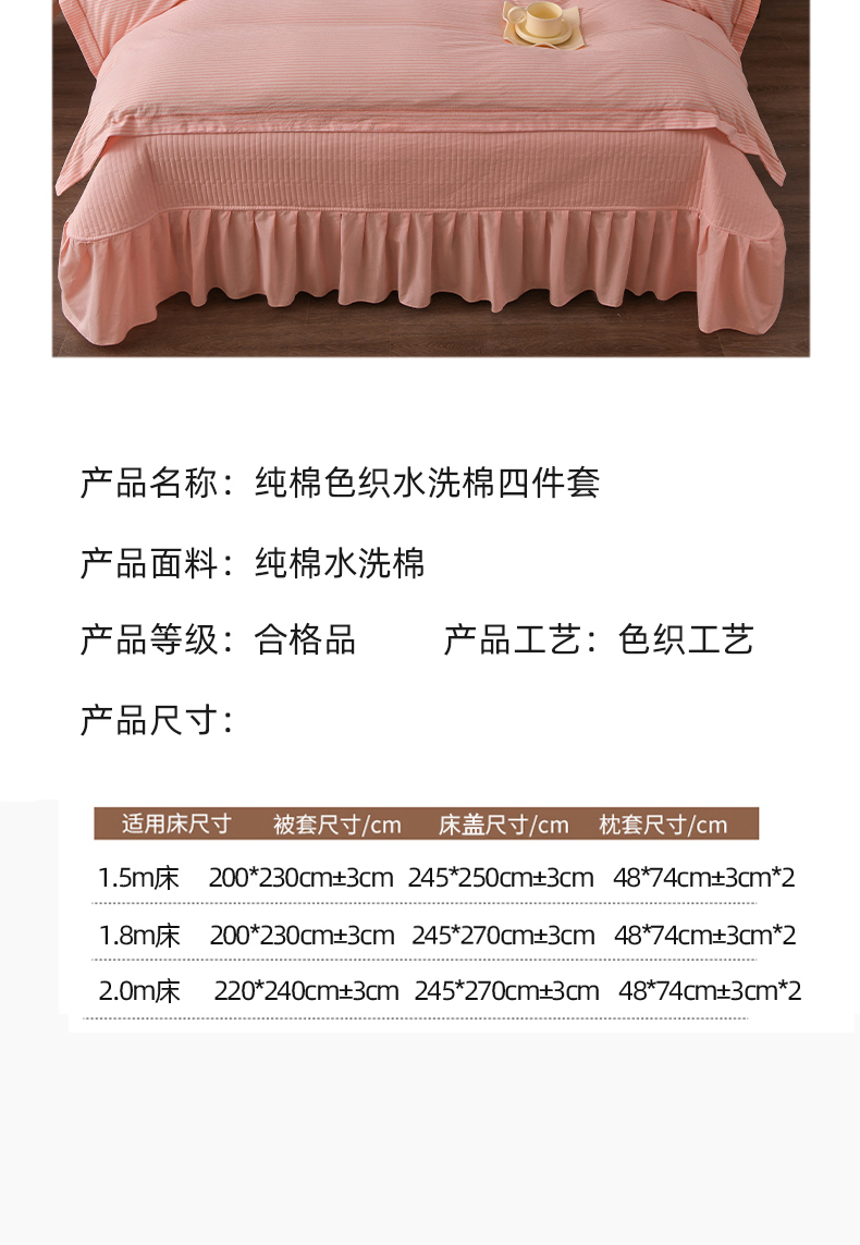 商品名称:金艾草 2026春夏新款全棉纯棉色织水洗棉床盖四件套 条纹-粉色