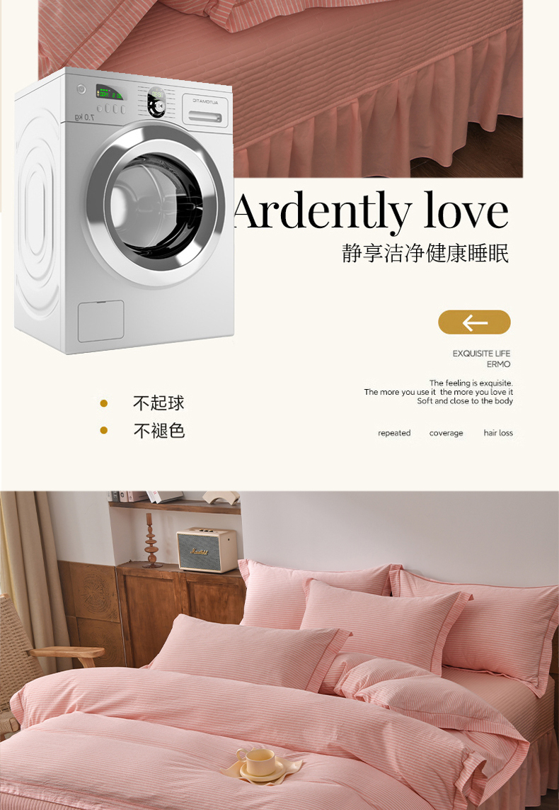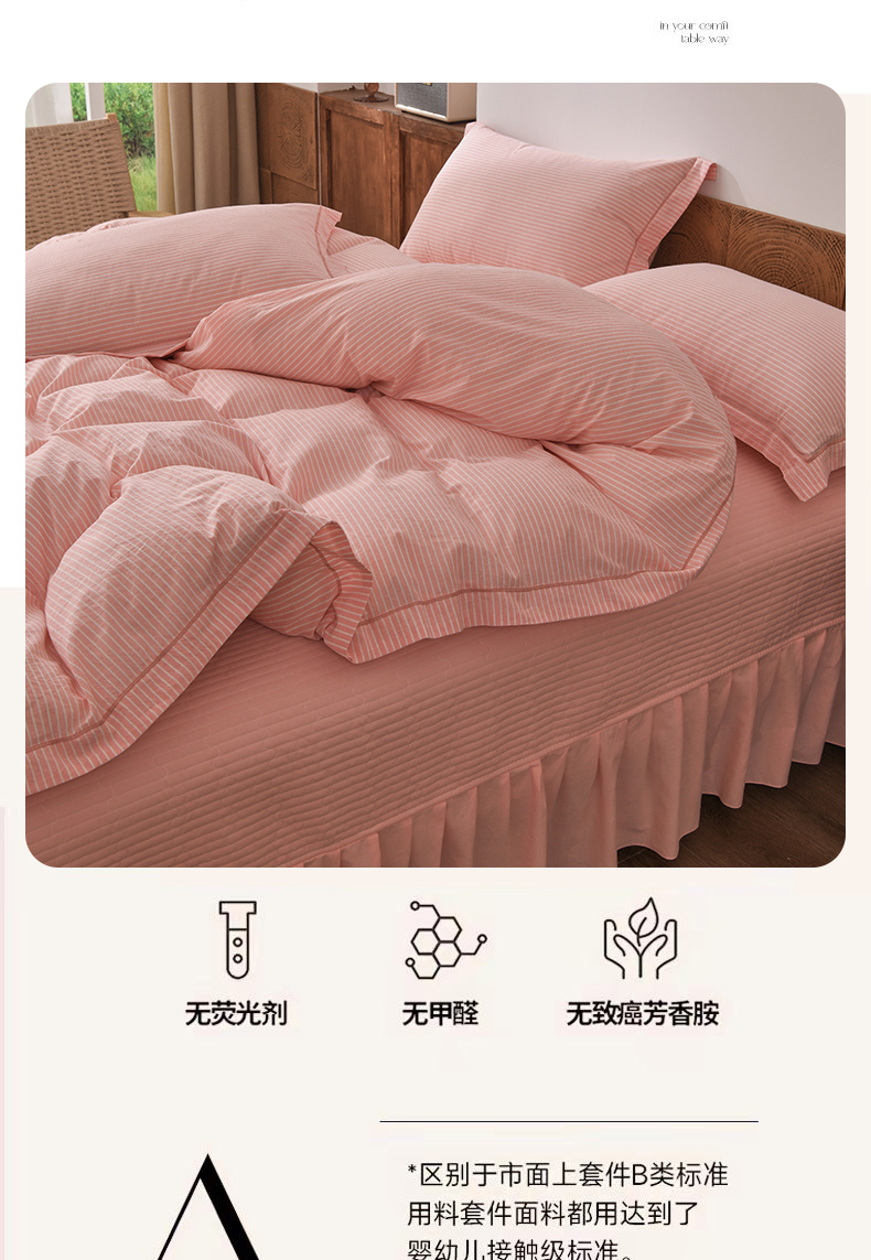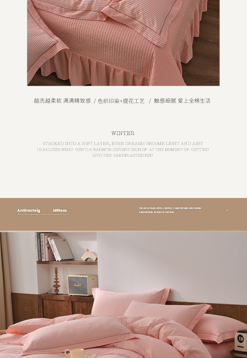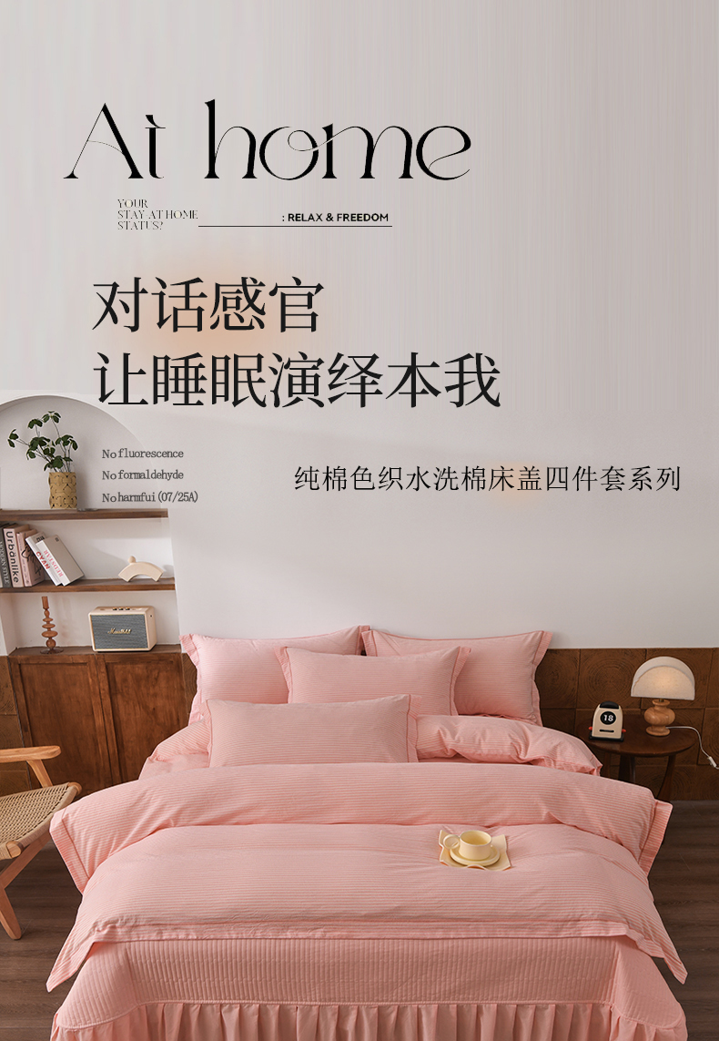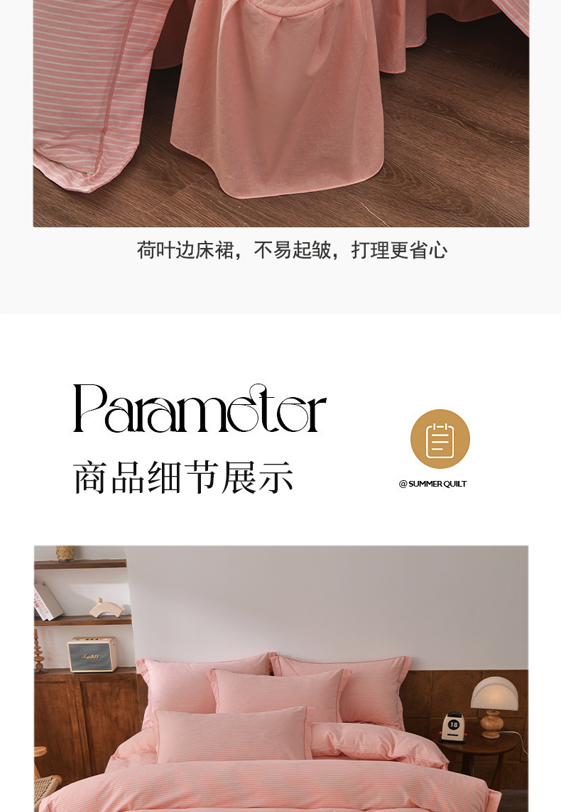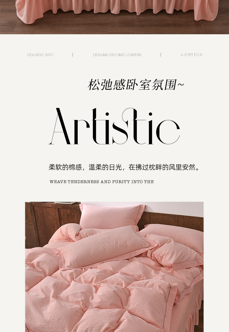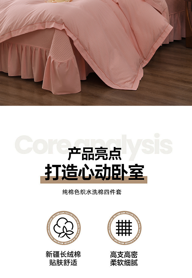 商品名称:金艾草 2026春夏新款全棉纯棉色织水洗棉床盖四件套 条纹-粉色