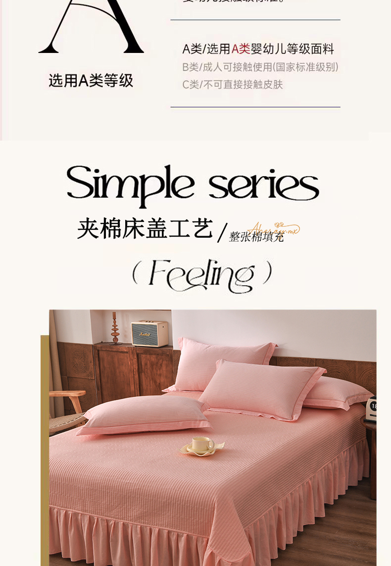 (总)金艾草 2024新款水洗全棉浮雕提花床盖四件套,圣罗纳-灰,片叶情-豆绿,罗曼-浅绿,蜀锦-茉莉白,轻颜-珊瑚粉