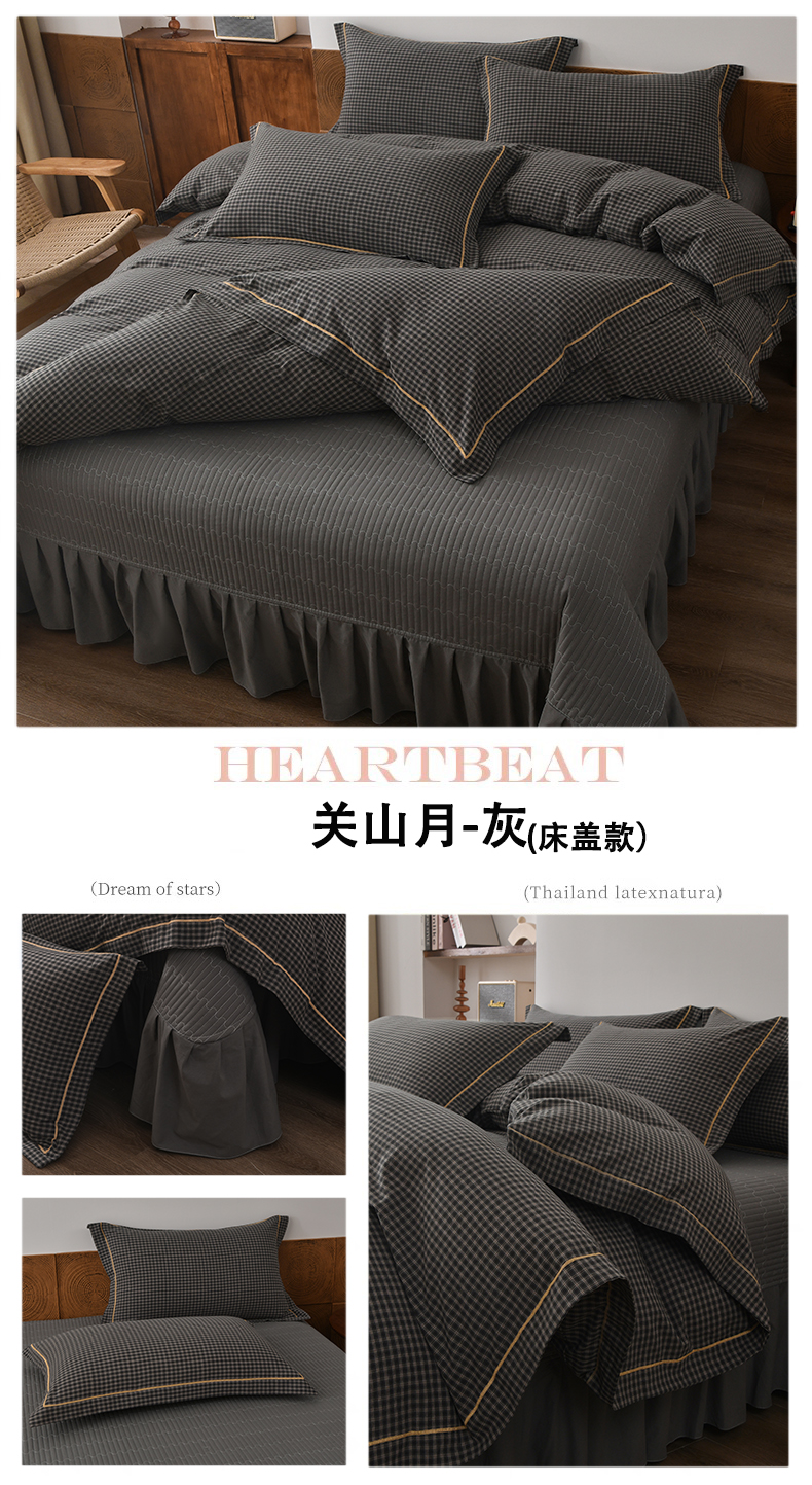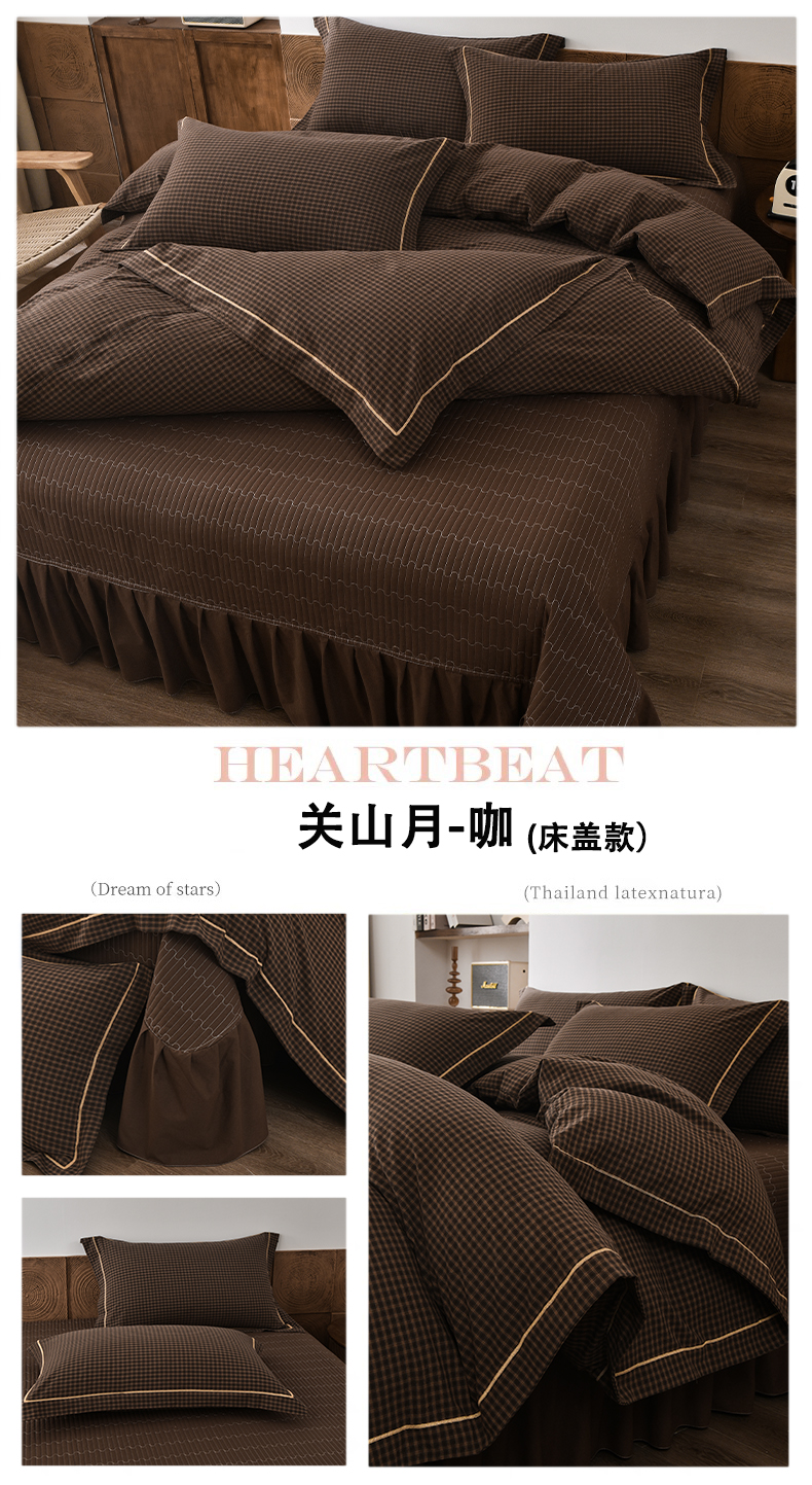 (总)金艾草 2026春夏新款全棉纯棉色织水洗棉床盖四件套,关山月-灰,沉香-褐色,沉香-橘红,沉香-咖色,芳菲-咖,关山月-咖,条纹-粉色,条纹-蓝色