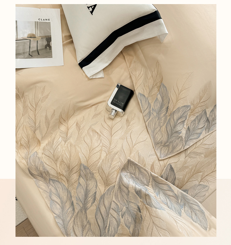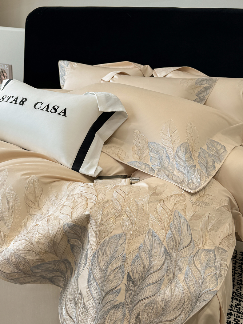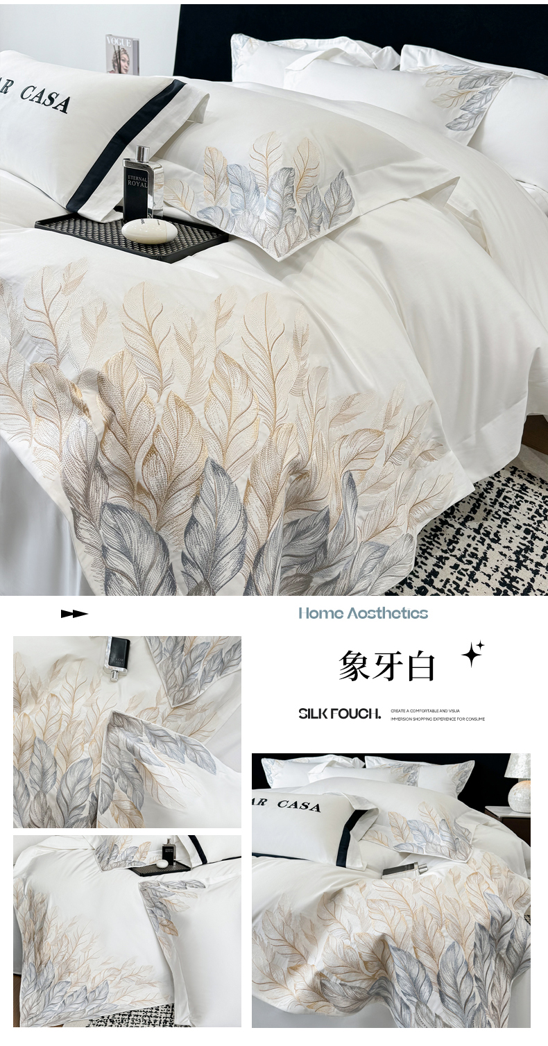(总)星蕴家纺 2026新款双股长绒棉全棉纯棉刺绣四件套-柏林系列,柏林 贵族白,柏林 星空灰,柏林 云山蓝,柏林 香槟金,柏林 可可粉