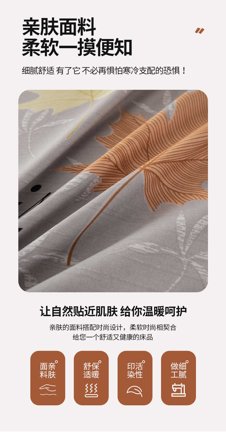 当前位置: 91家纺网 > 商品网购 > 床品套件 > 四件套 > 化纤普通四件套 > 佳宇轩 2026新款爆款140克独版植物羊绒加厚斜纹磨毛四件套 秋风落叶