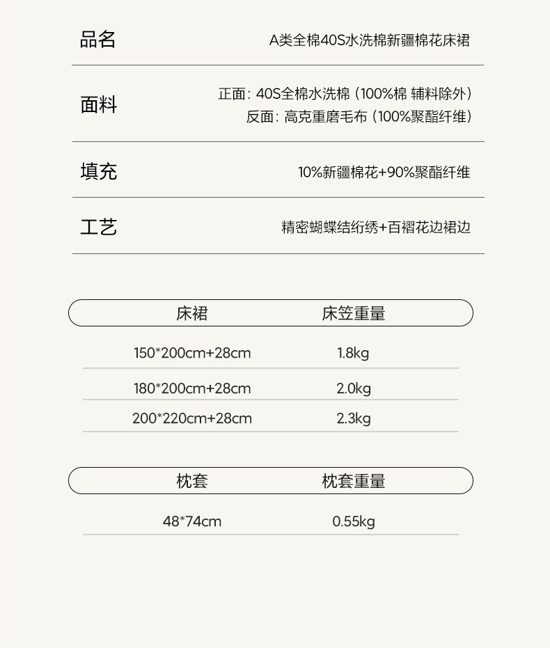 200x220cm+28cm单床裙+枕套一对