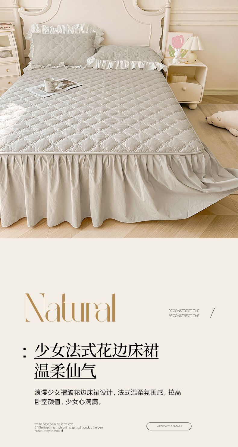 (总)佳笠家居 2026春夏新款A类韩版全棉水洗棉新疆棉花少女风床裙单件床裙单品单床裙-模特图,床裙款-枫舞灰,床裙款-贵族白,床裙款-晴空蓝,床裙款-象牙黄,床裙款-星空紫,床裙款-芝夏粉