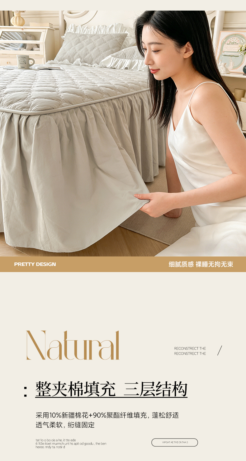 • 91家纺网 家纺一手货源 找家纺 (总)佳笠家居 2026春夏新款A类韩版全棉水洗棉新疆棉花少女风床裙单件床裙单品单床裙-模特图,床裙款-枫舞灰,床裙款-贵族白,床裙款-晴空蓝,床裙款-象牙黄,床裙款-星空紫,床裙款-芝夏粉