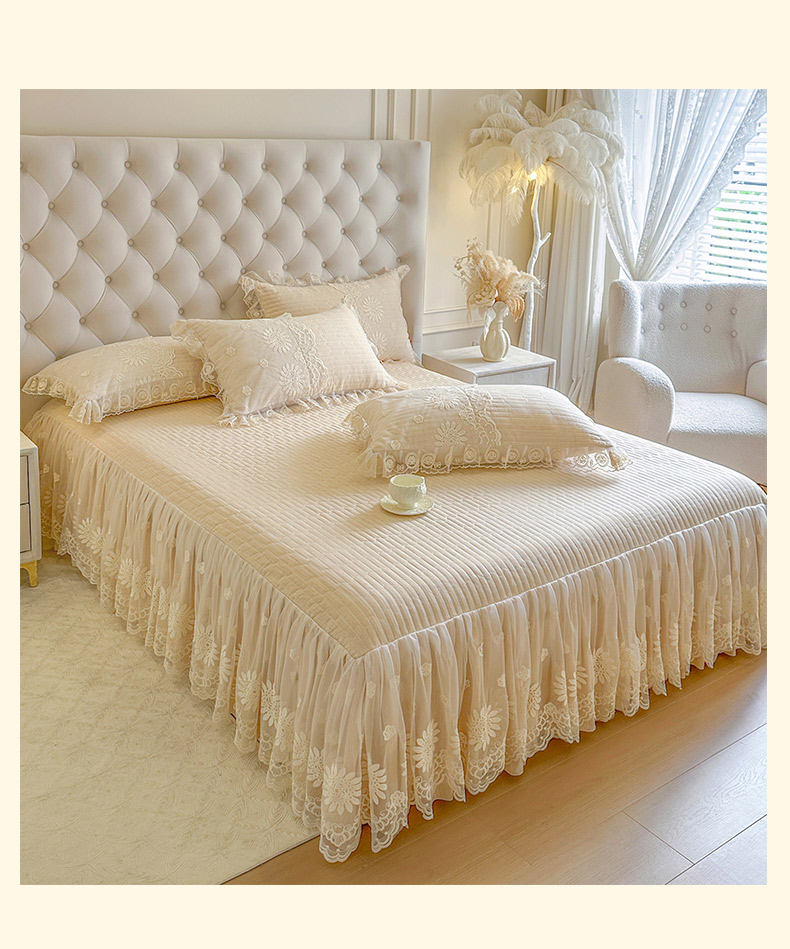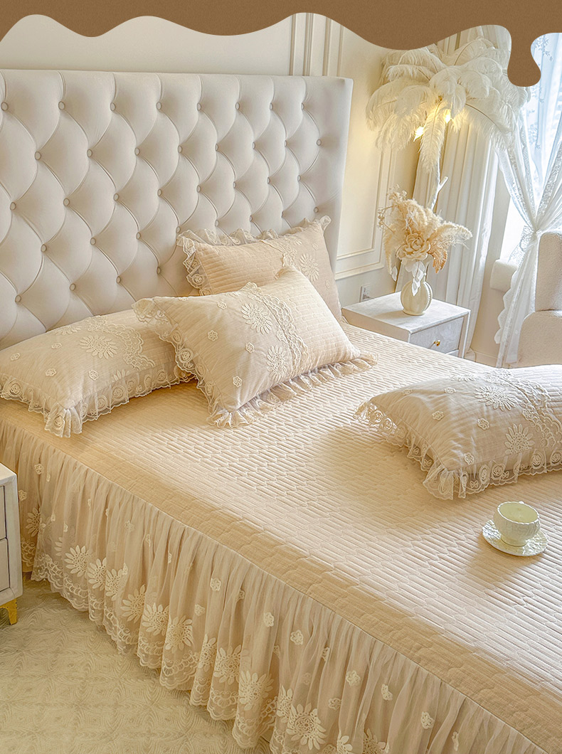恋尚 2026新款甜梦花嫁色织麻床裙蕾丝夹棉床裙床笠控价床裙135起,床裙三件170,甜梦花嫁系列 甜梦花嫁 米黄