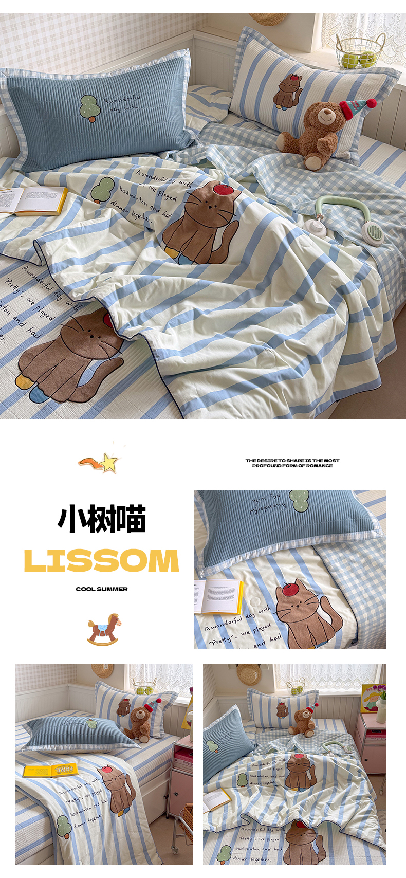 (总)暖生活 2026新款工艺款全棉水洗棉床盖单品床盖床盖单件,组合图仅做展示不可下单,快乐小熊,萌宝星星,木马小咪,三伙伴,绅士小狗,甜品猫咪,晚安星星,小树喵