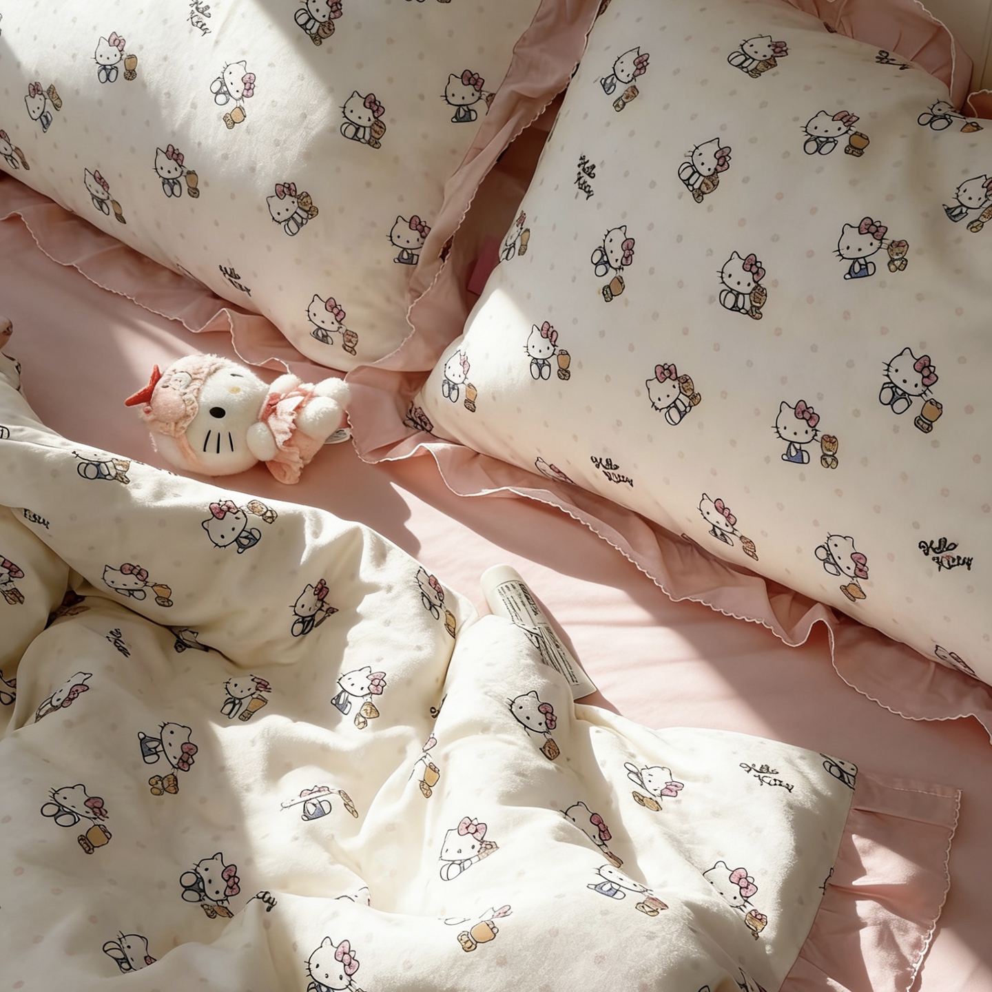 当前位置: 91家纺网 > 商品网购 > 床品套件 > 四件套 > 全棉普通四件套 > 荣轩家居 2026新款三丽鸥正版授权韩式小月牙边全棉纯棉双层纱四件套(铺床版) 奶油芝士