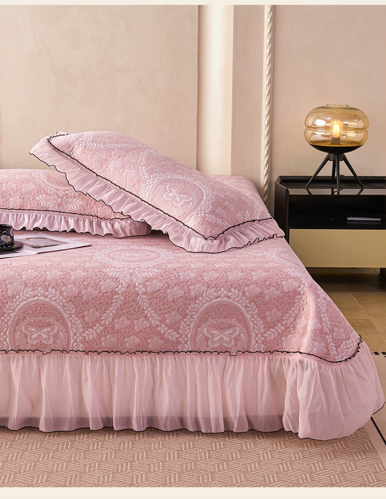 商品名称:(总)梵克保罗 2026春夏新款PE乙纶冰豆豆双色提花床裙款凉席席子三件套-蝶舞花间系列