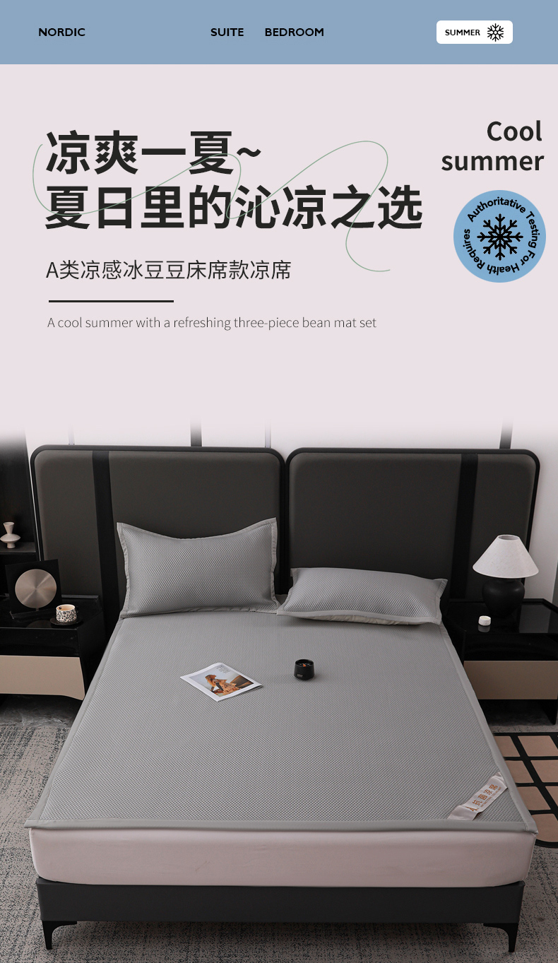 当前位置: 91家纺网 > 商品网购 > 床上用品 > 凉席 > 其他凉席 > 富馨莱 2026新款PE乙纶高克重冰豆豆席凉感凉席单件平铺款学生宿舍支持一件定制尺寸 冰灰色