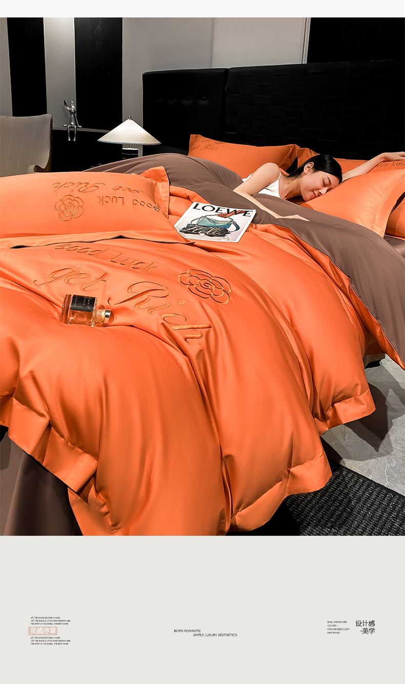当前位置: 91家纺网 > 商品网购 > 床品套件 > 四件套 > 全棉普通四件套 > 润锦云 2026新款100s全棉长绒棉纯棉刺绣四件套-如愿 如愿-爱玛橙+摩卡棕
