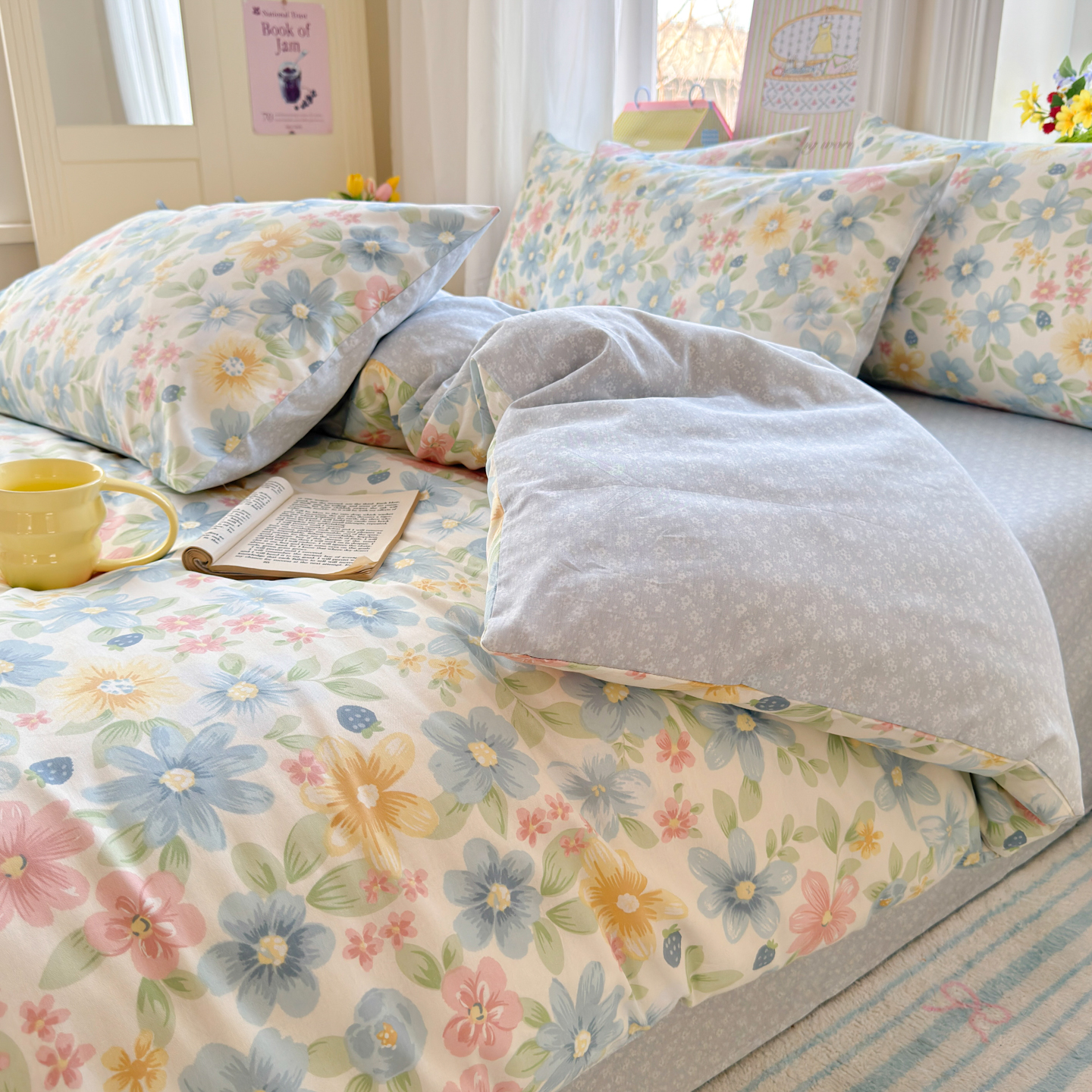 当前位置: 91家纺网 > 商品网购 > 床品套件 > 四件套 > 全棉普通四件套 > 优彩 2026春夏新款全棉纯棉13070跑量款特价小碎花卡通四件套 繁樱似梦