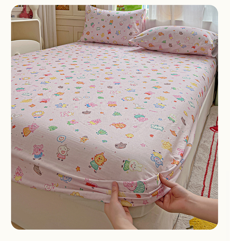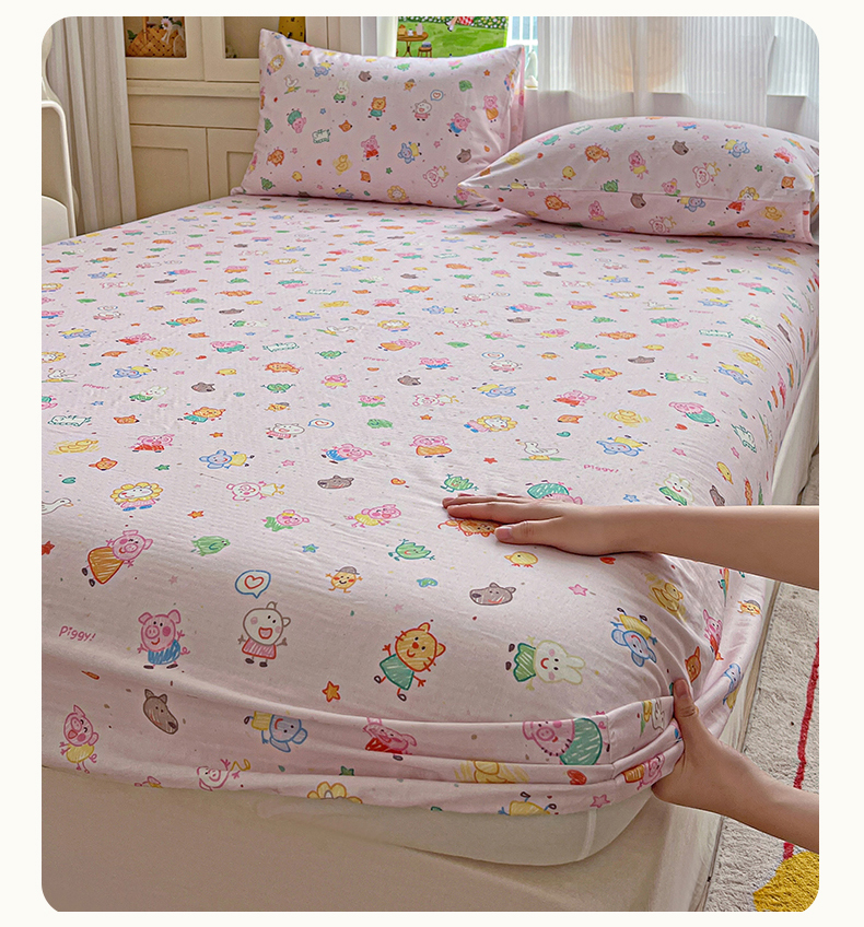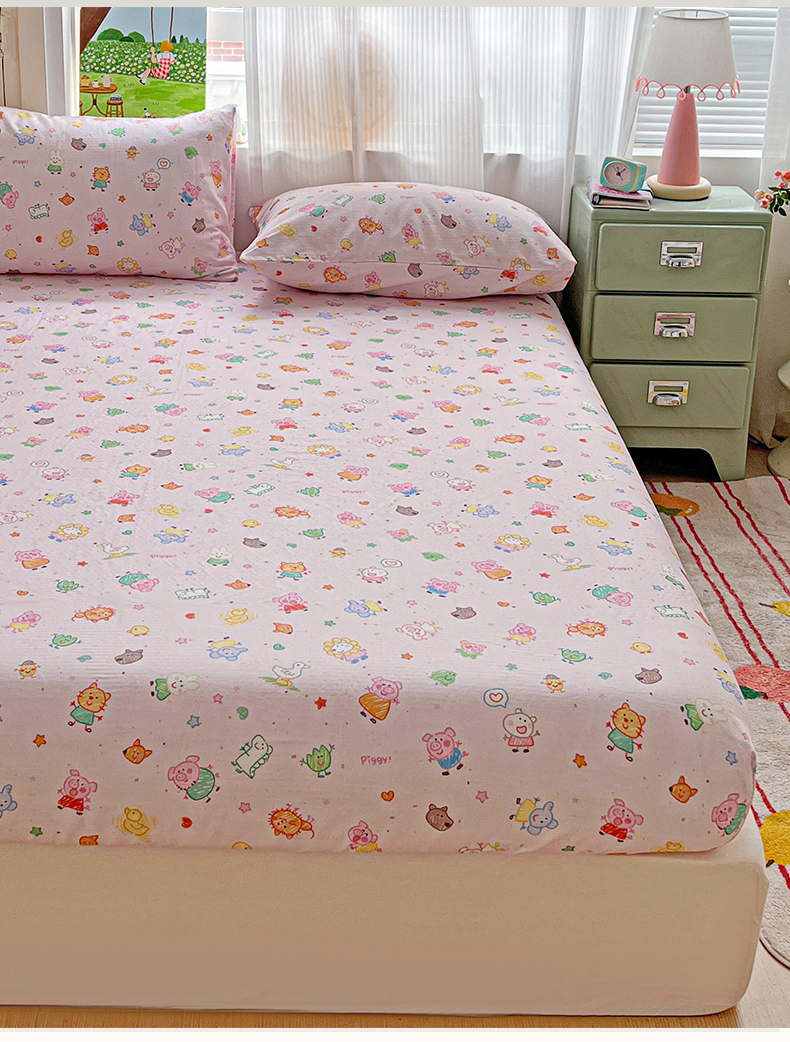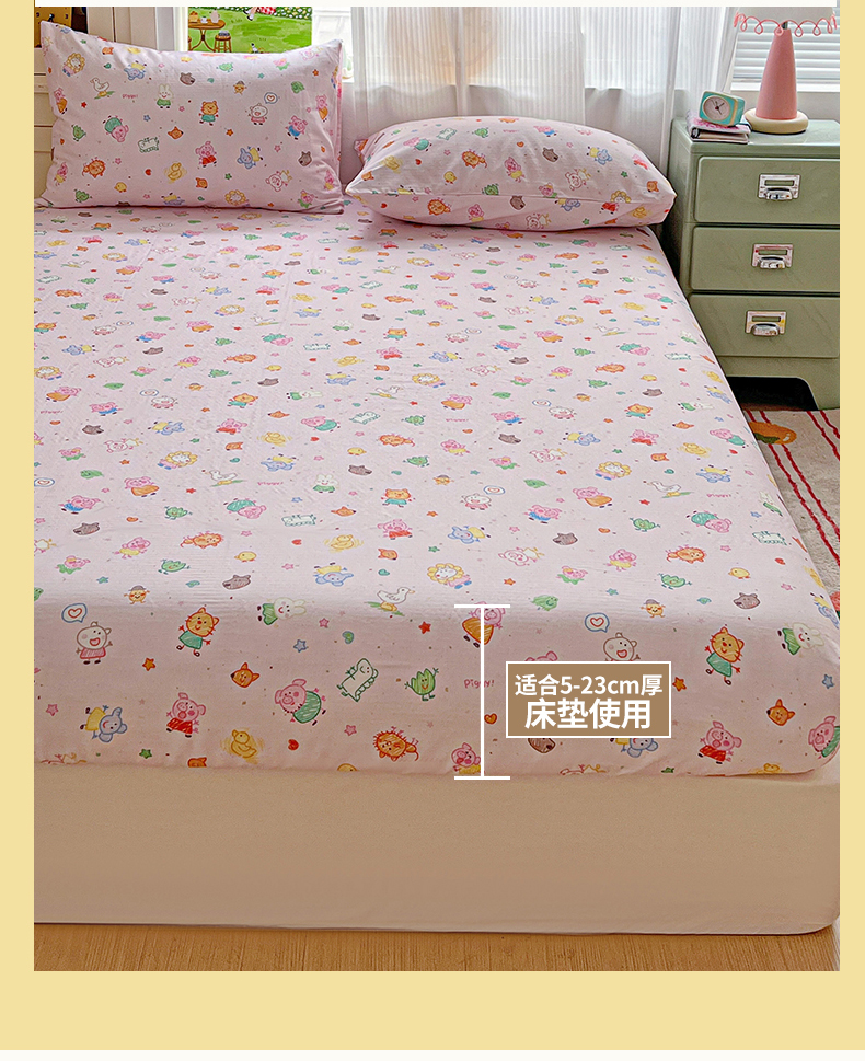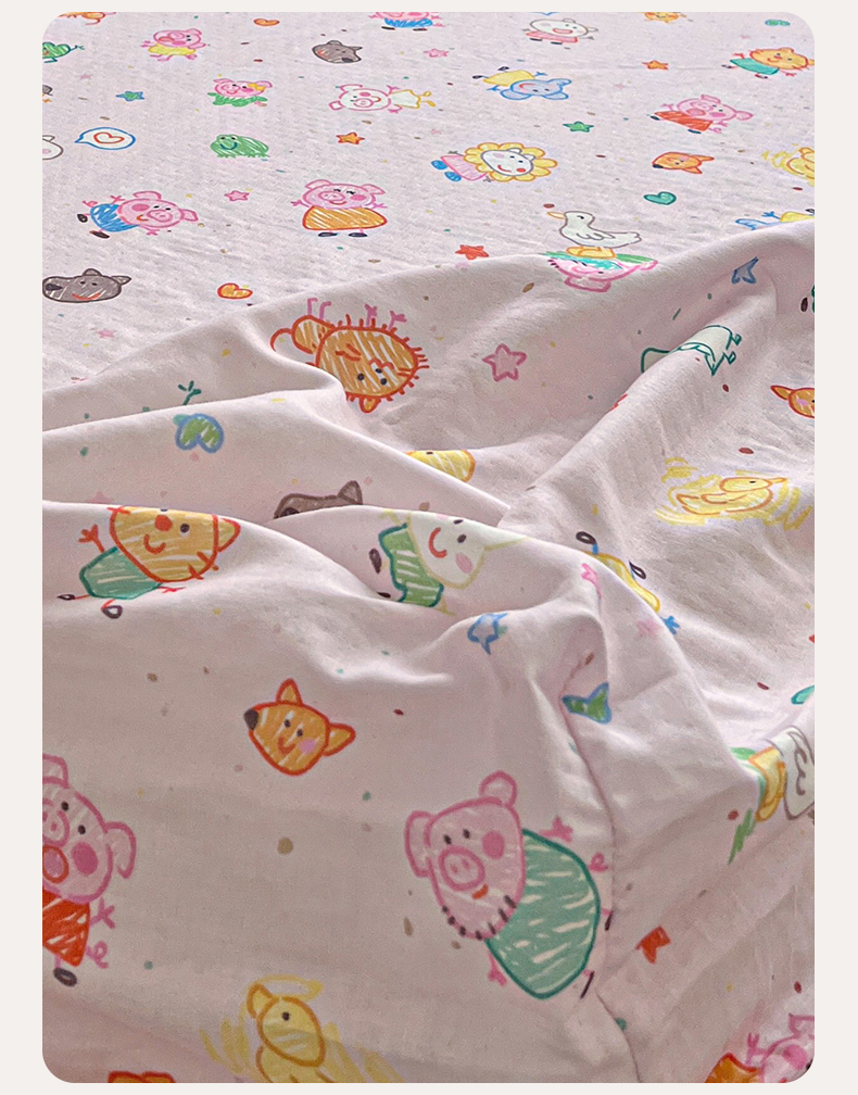 • 91家纺网 家纺一手货源 找家纺 名兮家居 2026新款全棉纯棉A类卡通时尚风双层纱床笠单品床笠床笠单件 双层纱-猪猪乐园
