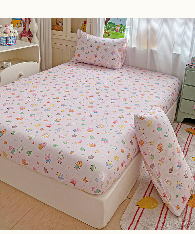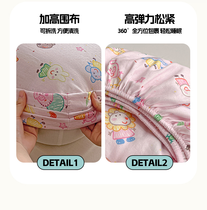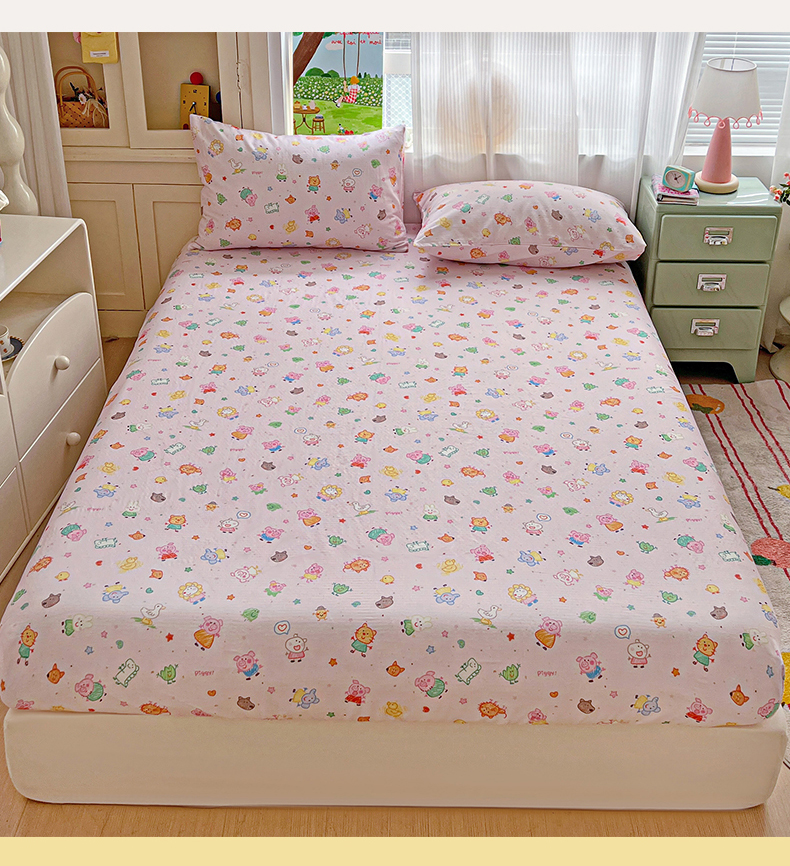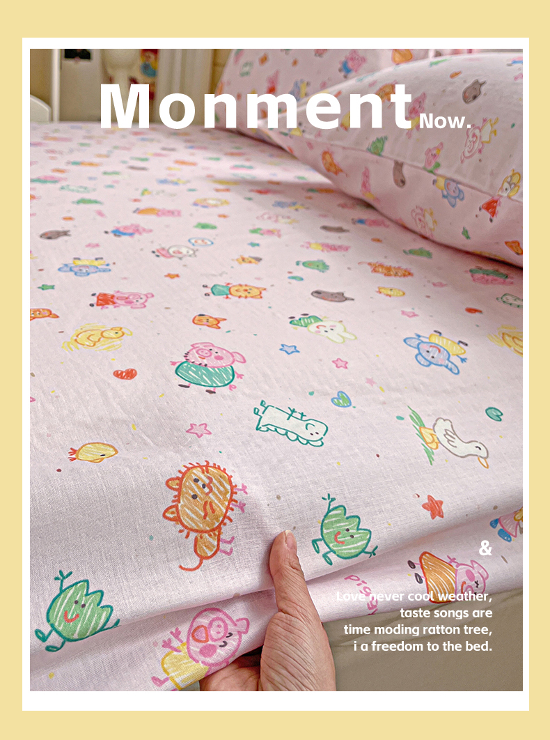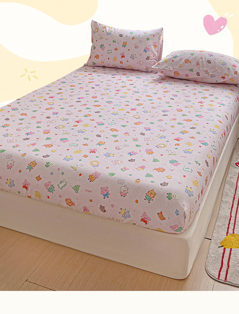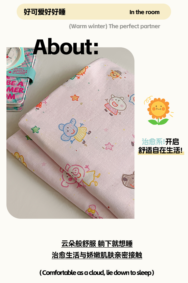 • 91家纺网 家纺一手货源 找家纺 名兮家居 2026新款全棉纯棉A类卡通时尚风双层纱床笠单品床笠床笠单件 双层纱-猪猪乐园