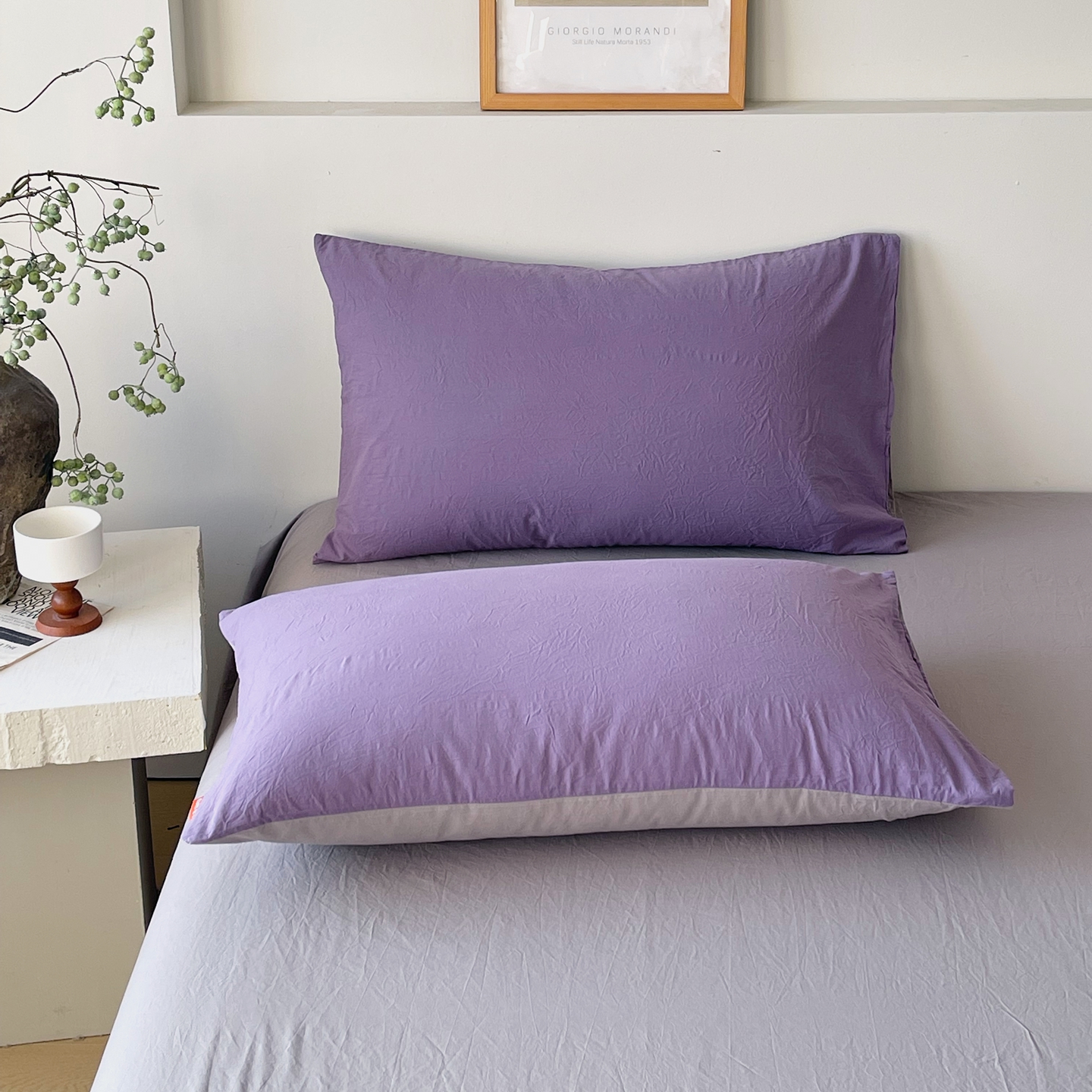 商品名称:春皖家纺 2026春夏新款双拼全棉水洗棉单枕套枕套单件单品枕套 水晶紫-卡其