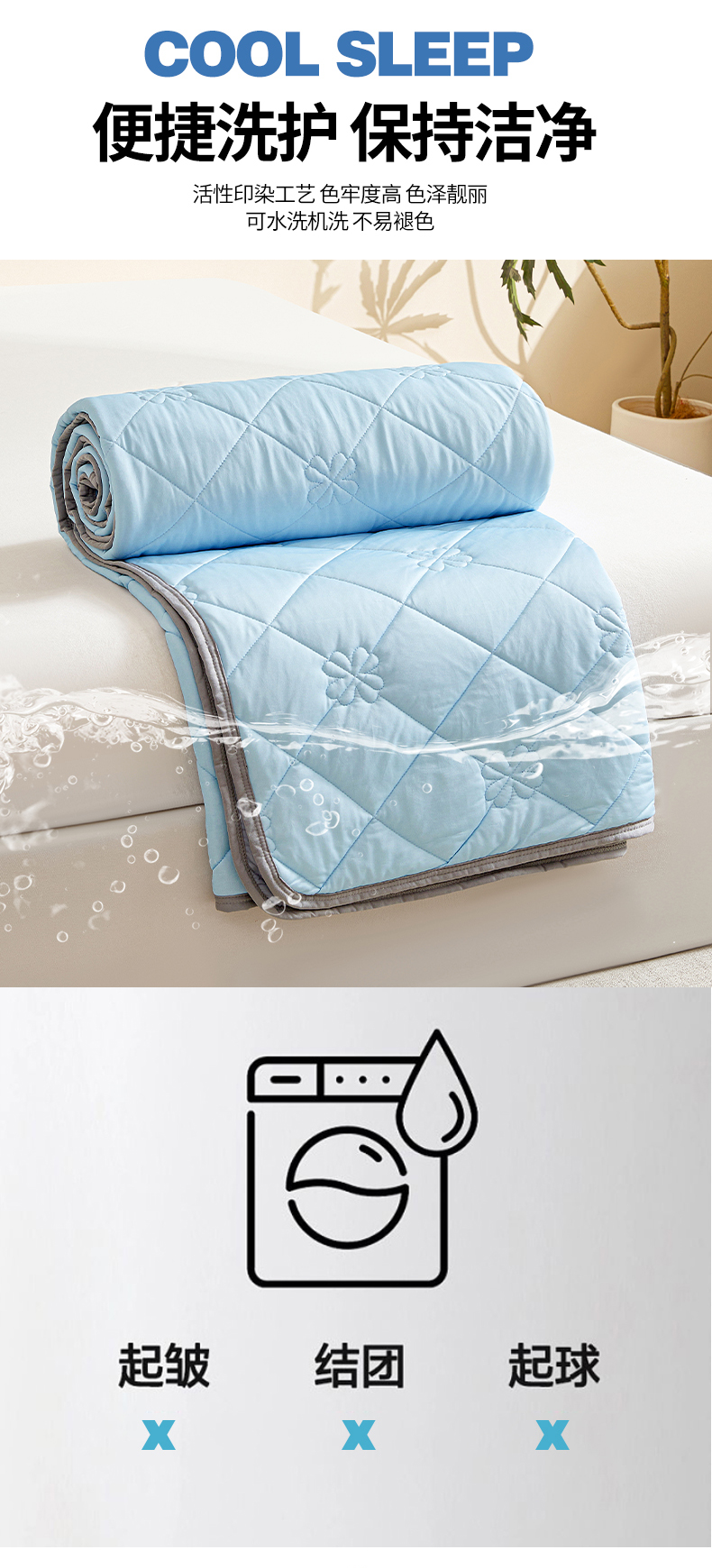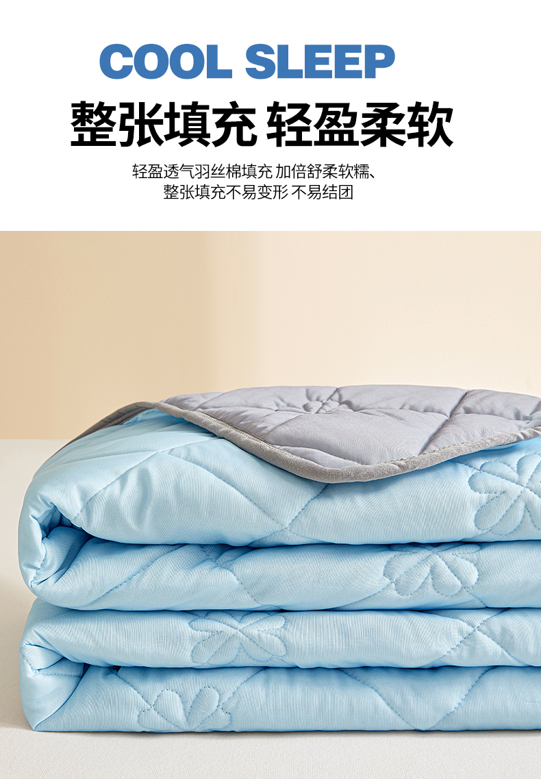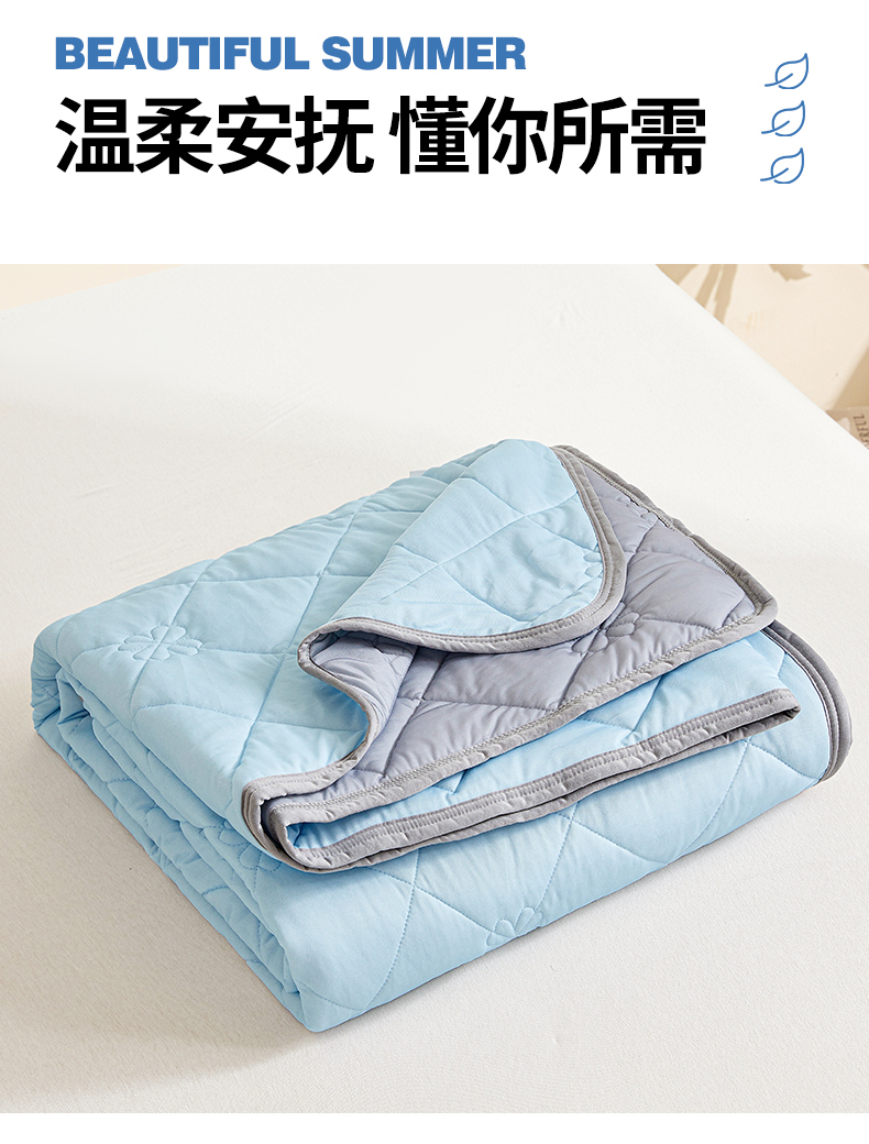 魅图家纺 2026新款跨境A类凉感丝夏被-中文版 双拼-天空蓝