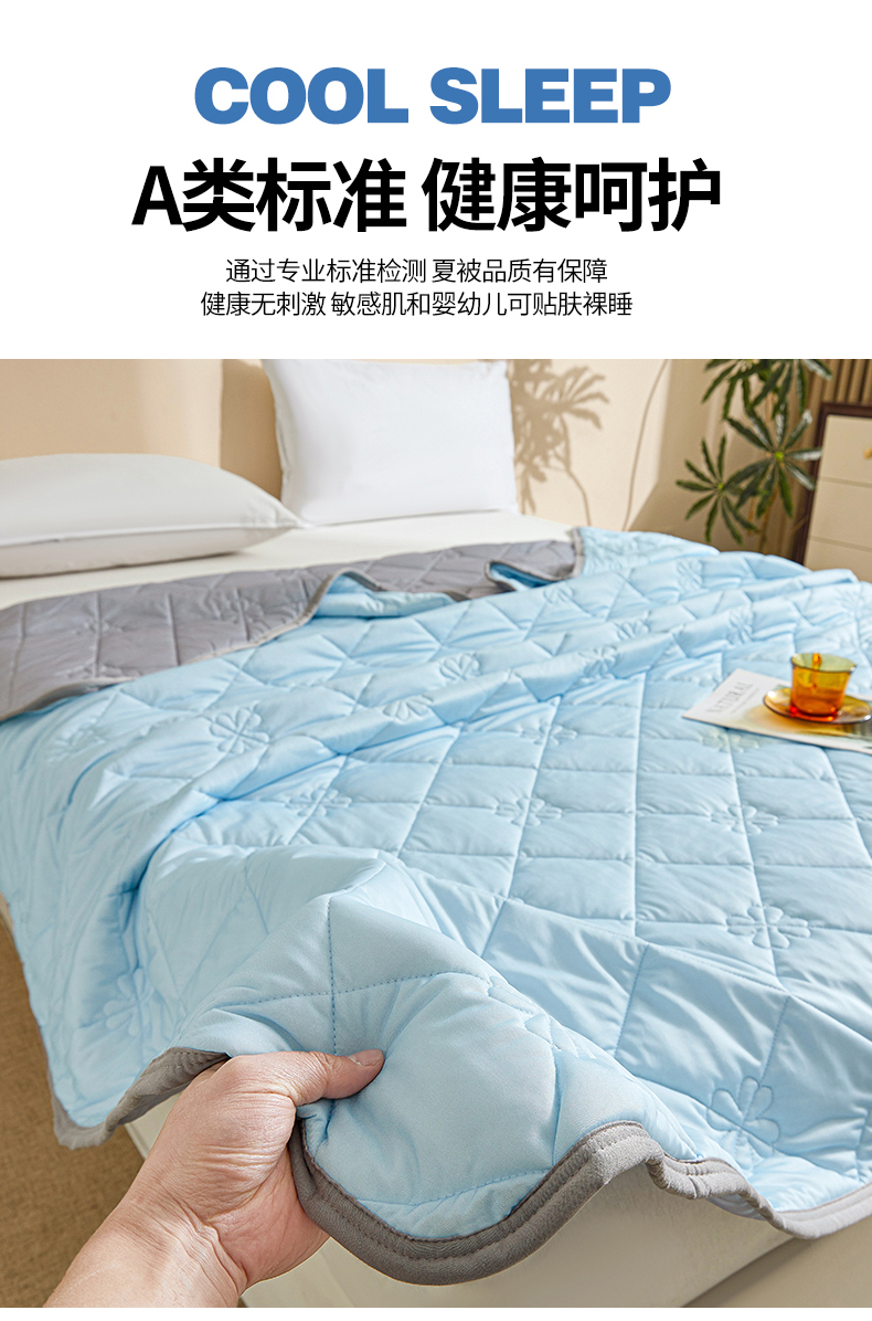 商品名称:魅图家纺 2026新款跨境A类凉感丝夏被-中文版 双拼-天空蓝
