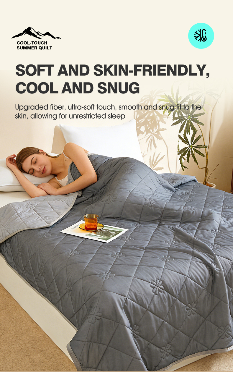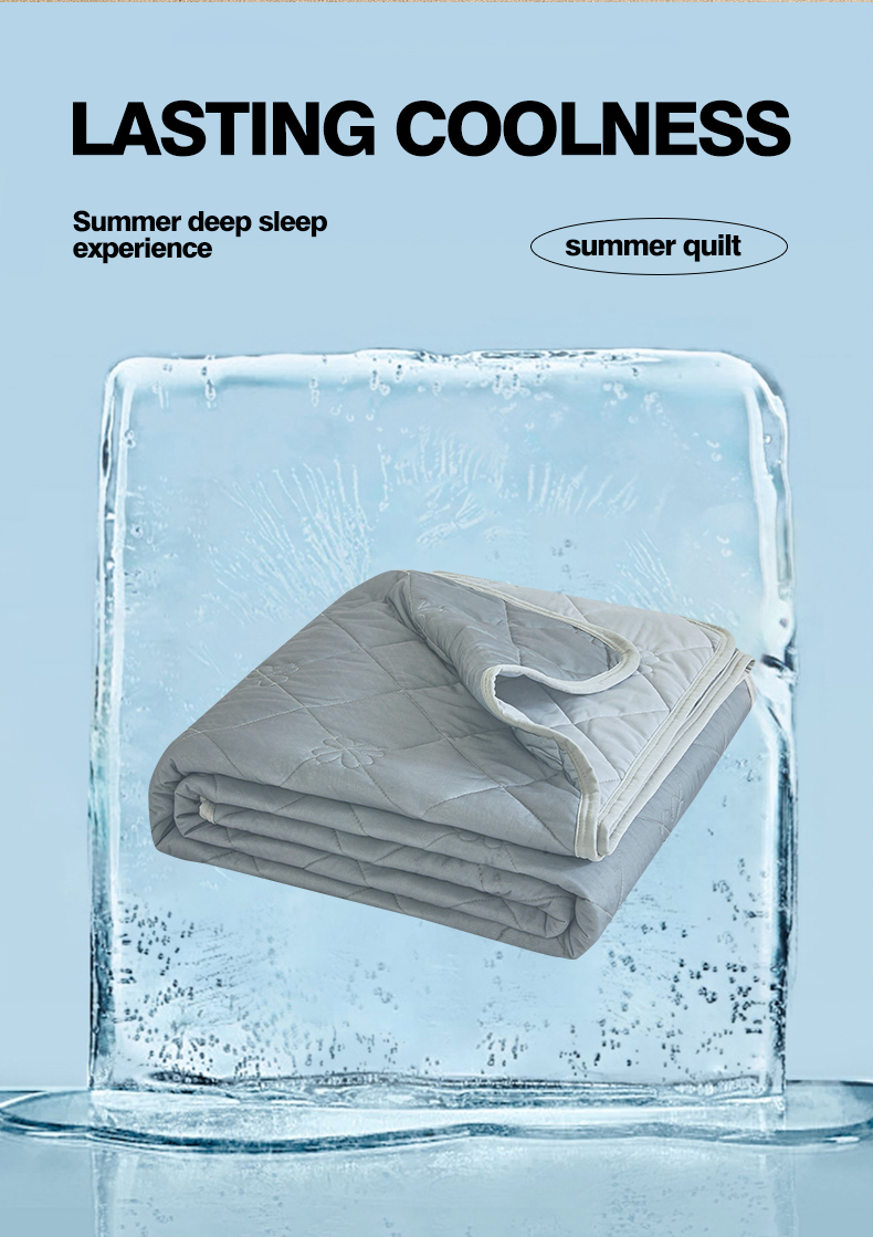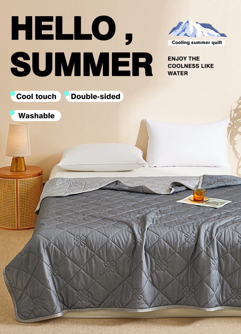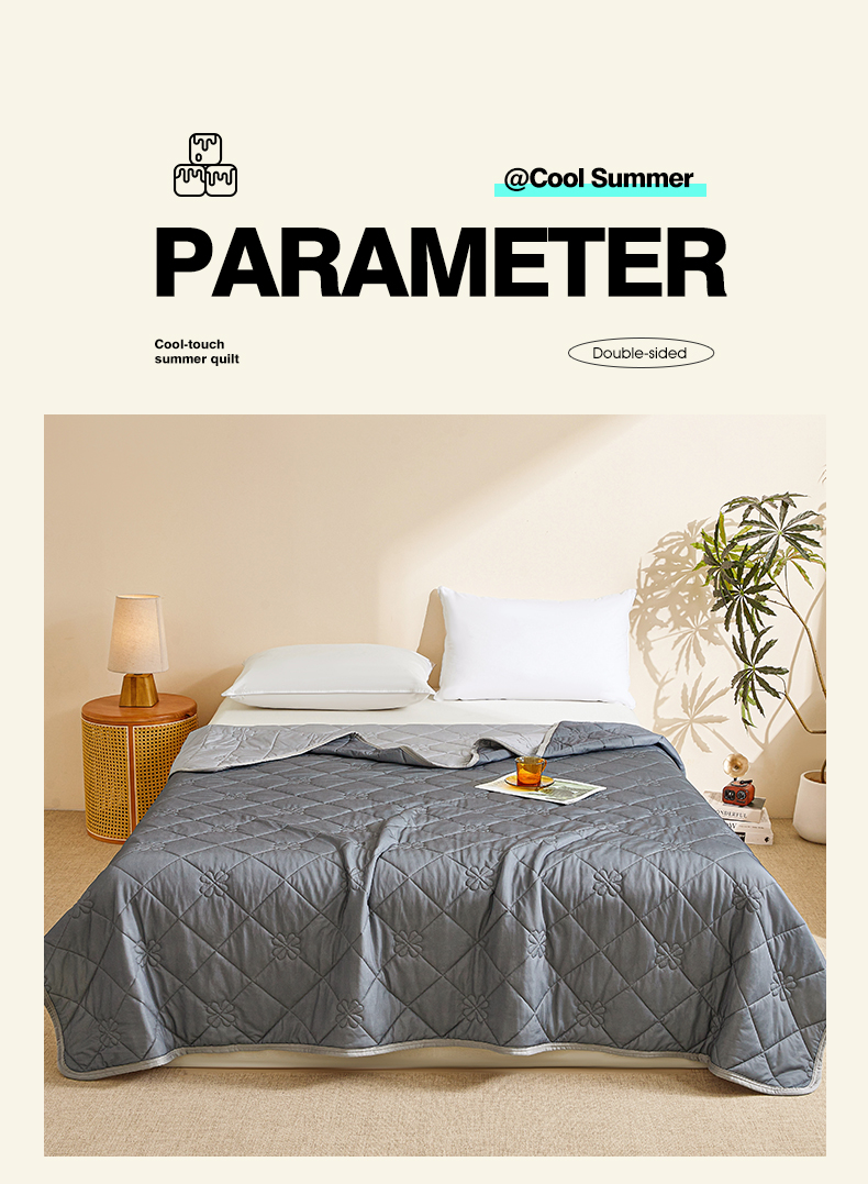 魅图家纺 2026新款跨境A类凉感丝夏被-英文版 双拼 远黛灰
