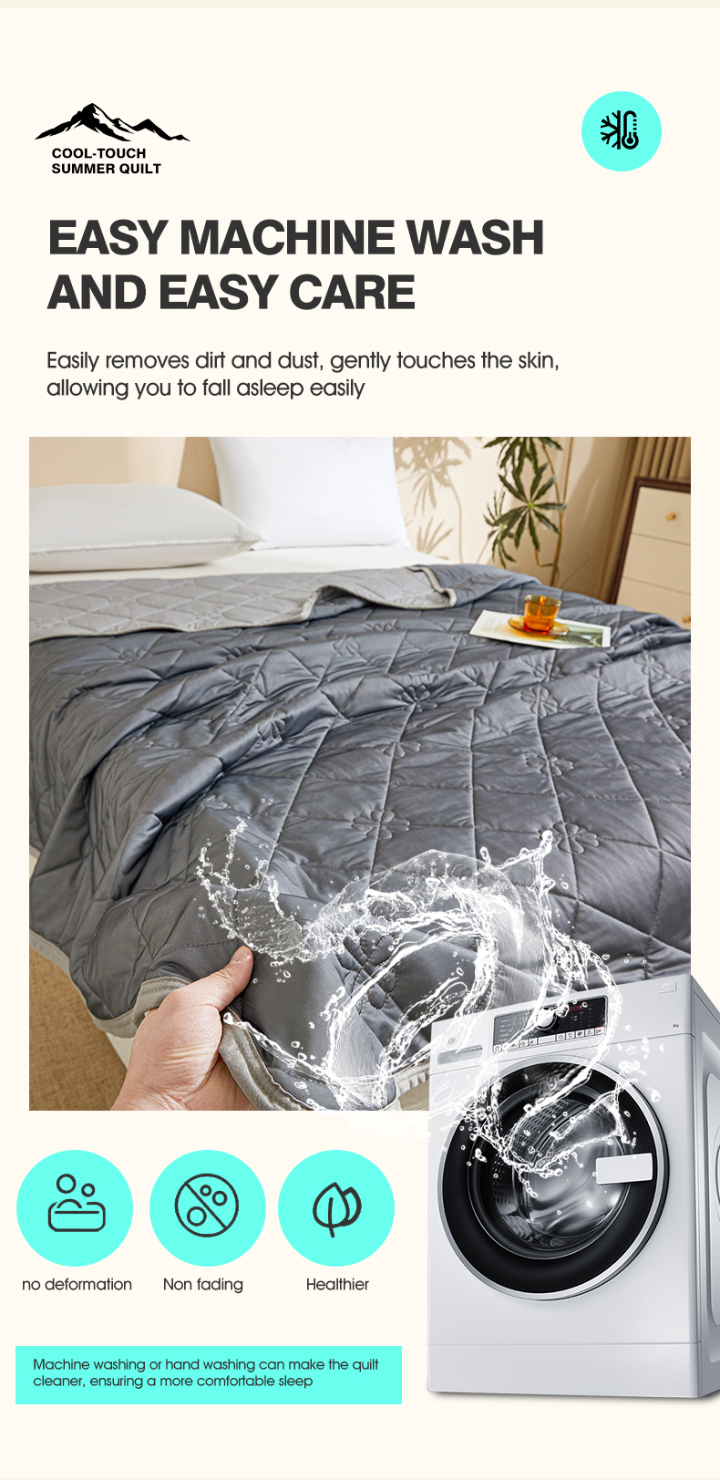 商品名称:魅图家纺 2026新款跨境A类凉感丝夏被-英文版 双拼 远黛灰