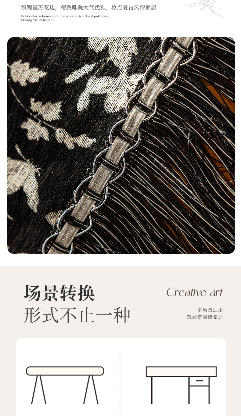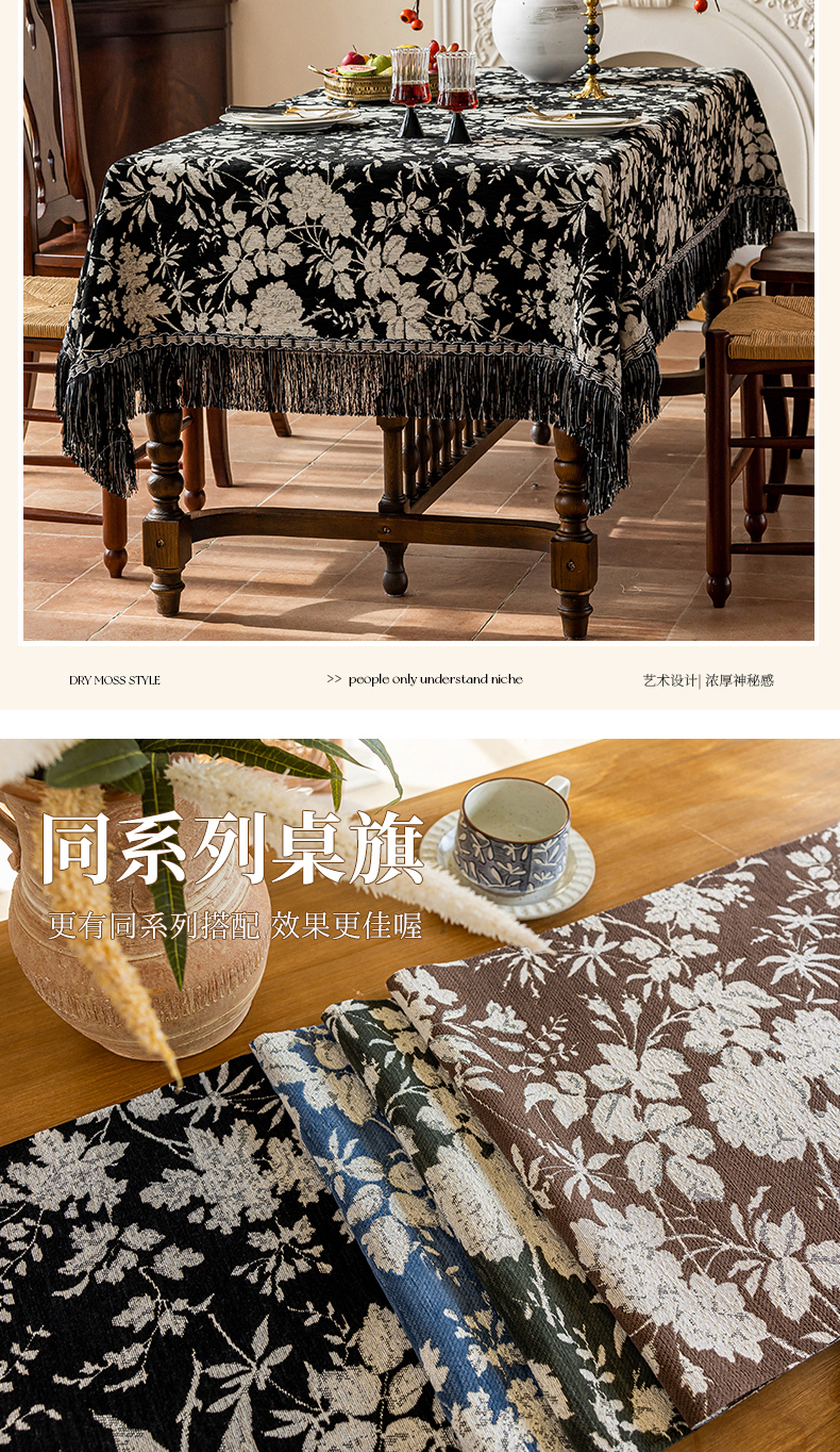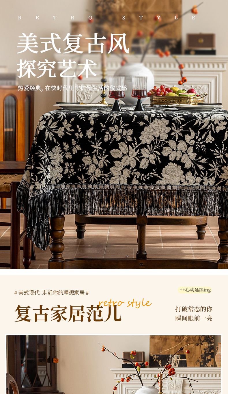 当前位置: 91家纺网 > 商品网购 > 居家布艺 > 餐桌布 > (总)南通大梧纺织 2026新款美式复古风满园(流苏款)桌布