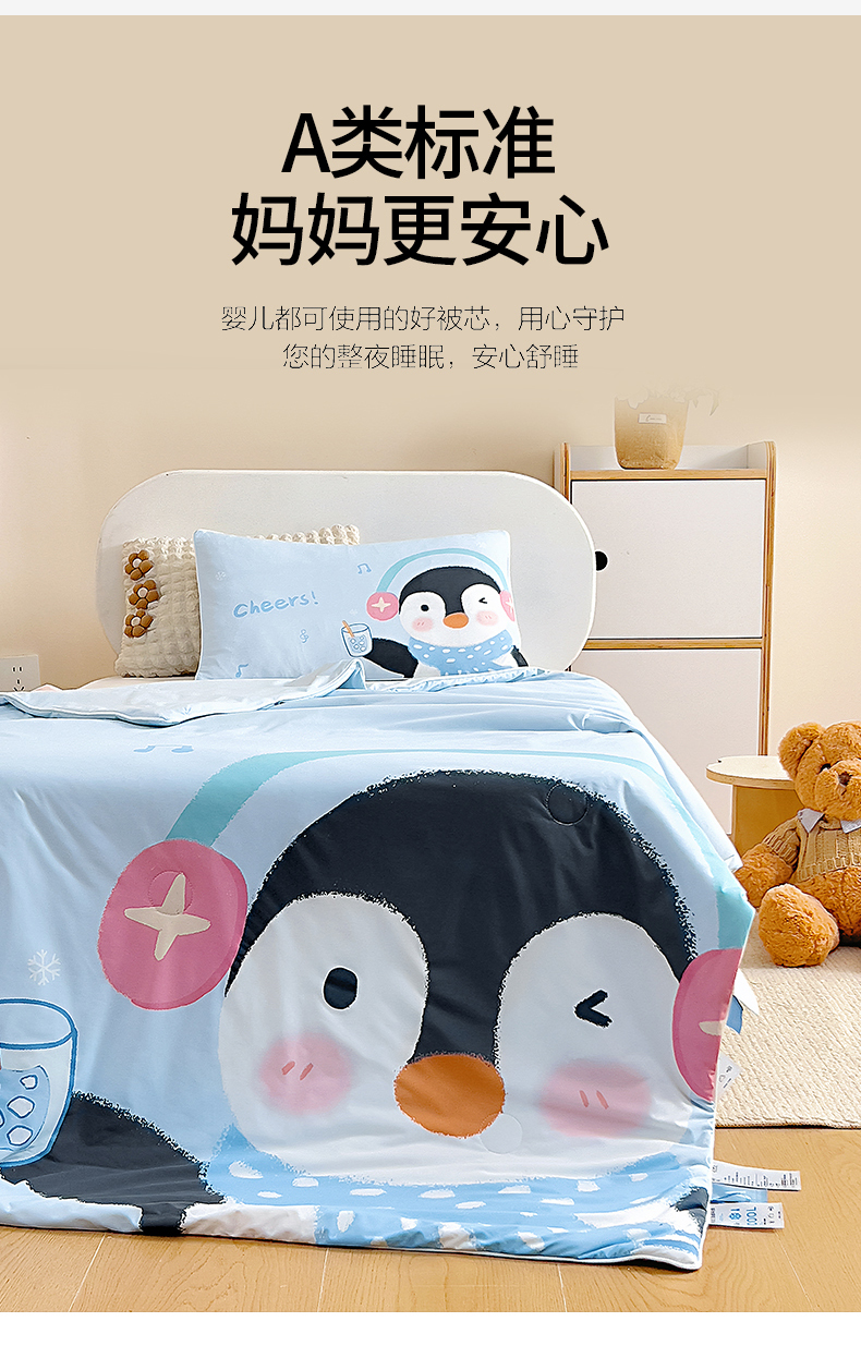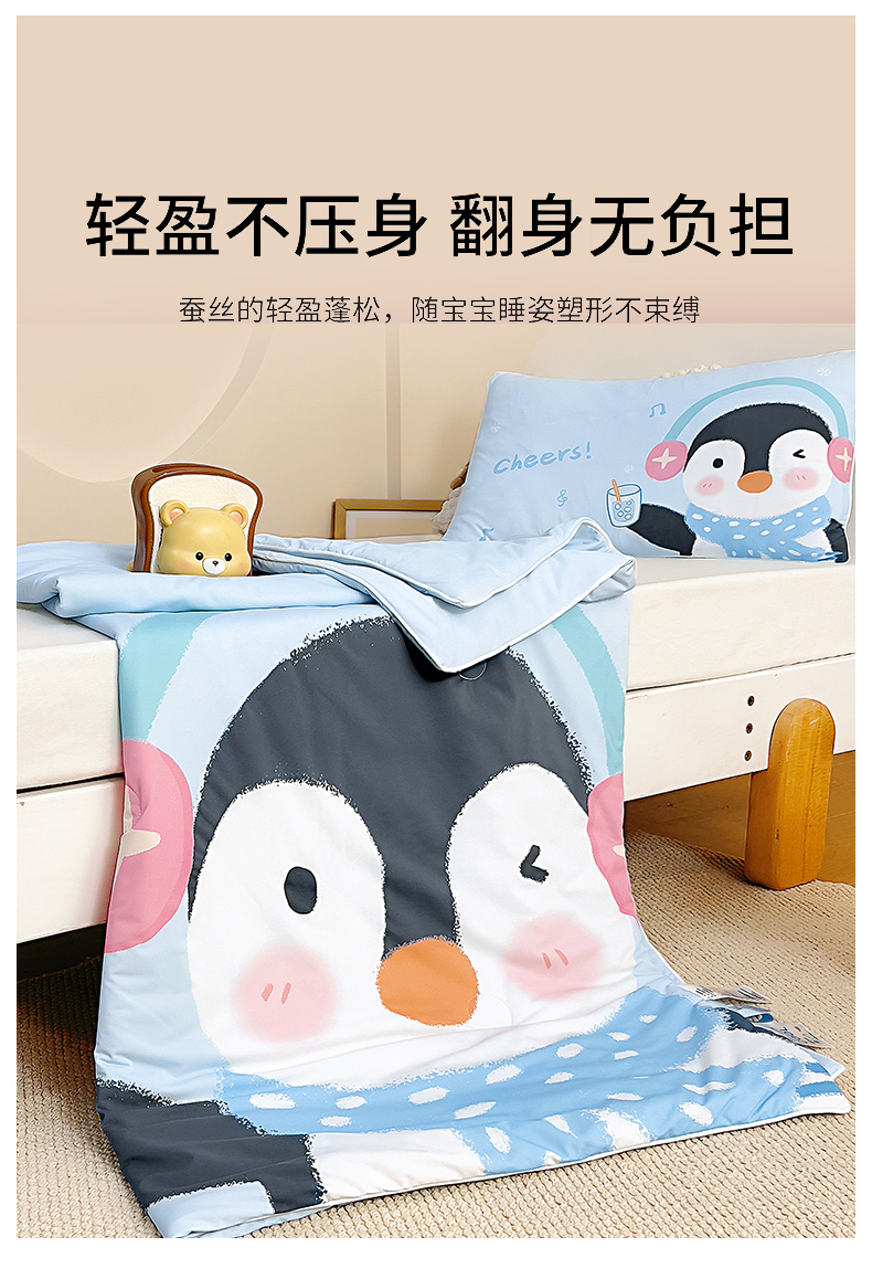 商品名称:御棉坊2026新款A类锦氨数码印花大版蚕丝儿童夏凉被幼儿园午睡被宝宝夏季空调被薄被子 动感企鹅