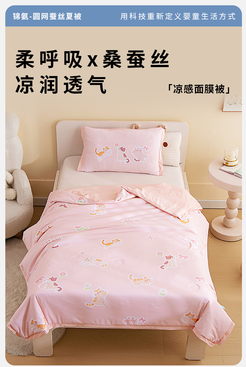 商品名称:御棉坊2026新款A类锦氨数码印花圆网蚕丝儿童夏凉被幼儿园午睡被宝宝夏季空调被薄被子 锦氨-小花猫