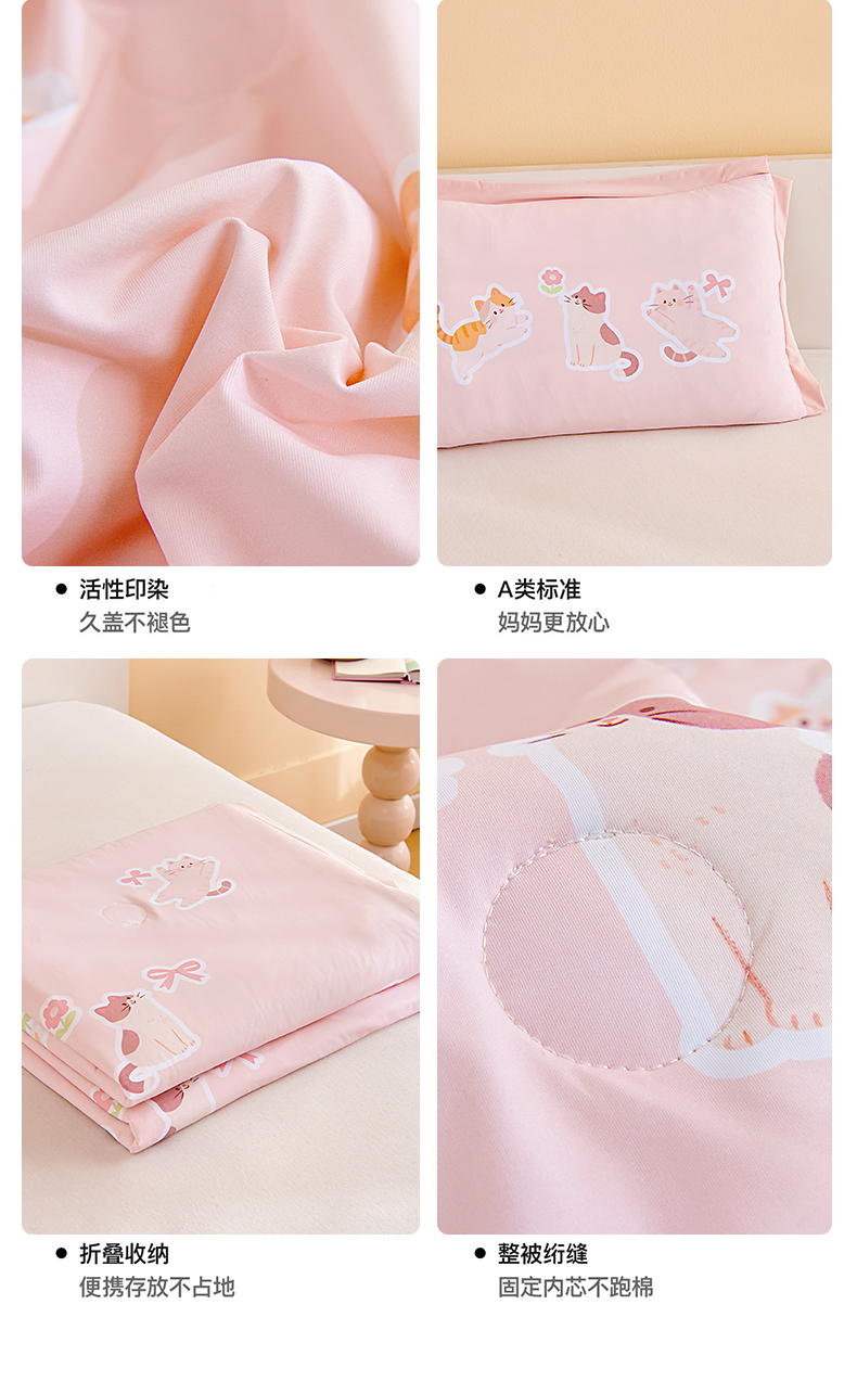 被子 > 夏被 > 御棉坊2026新款A类锦氨数码印花圆网蚕丝儿童夏凉被幼儿园午睡被宝宝夏季空调被薄被子 锦氨-小花猫