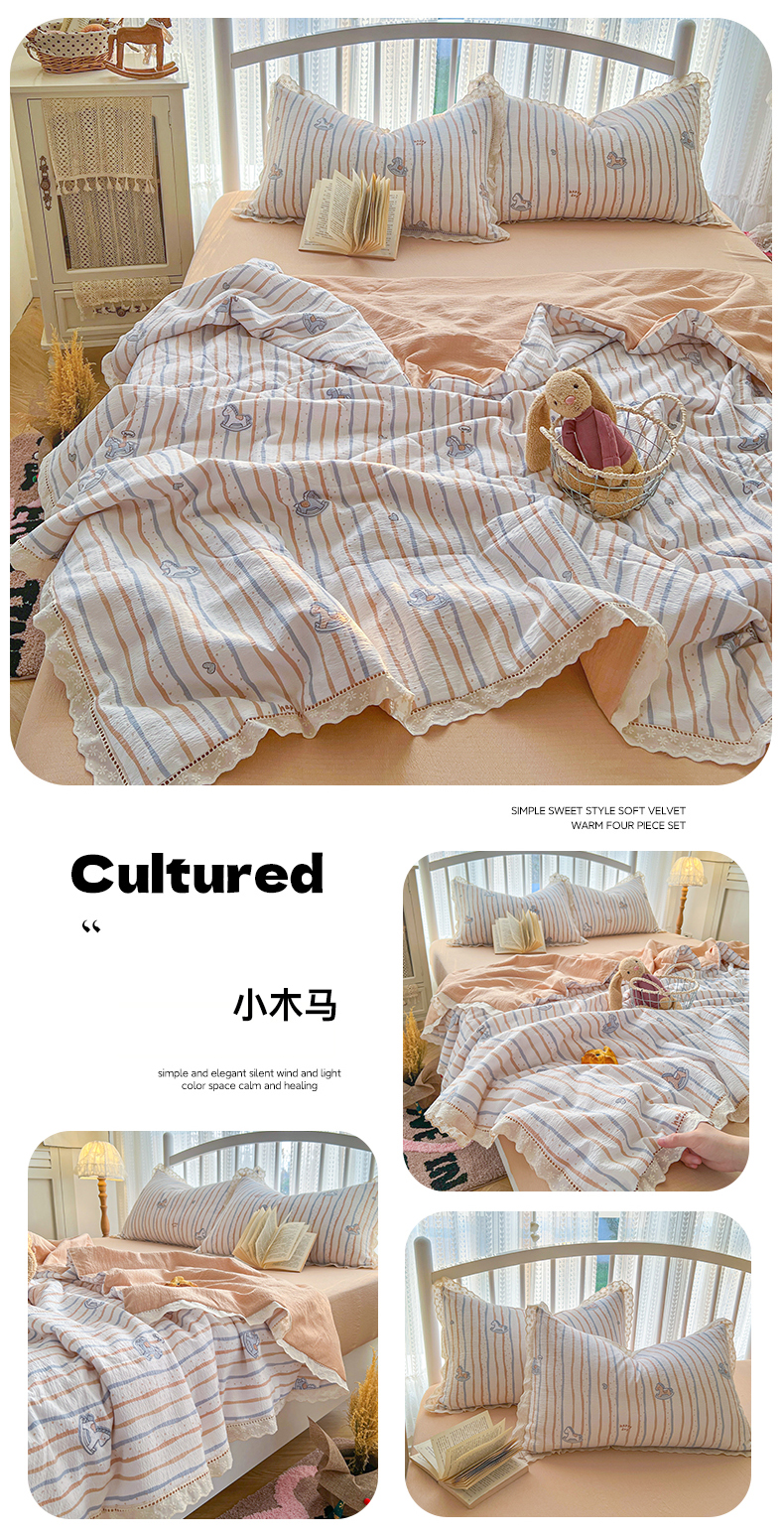 商品名称:港岛妹妹 2026新款镂空花边夏被 夏被四件套 米兰