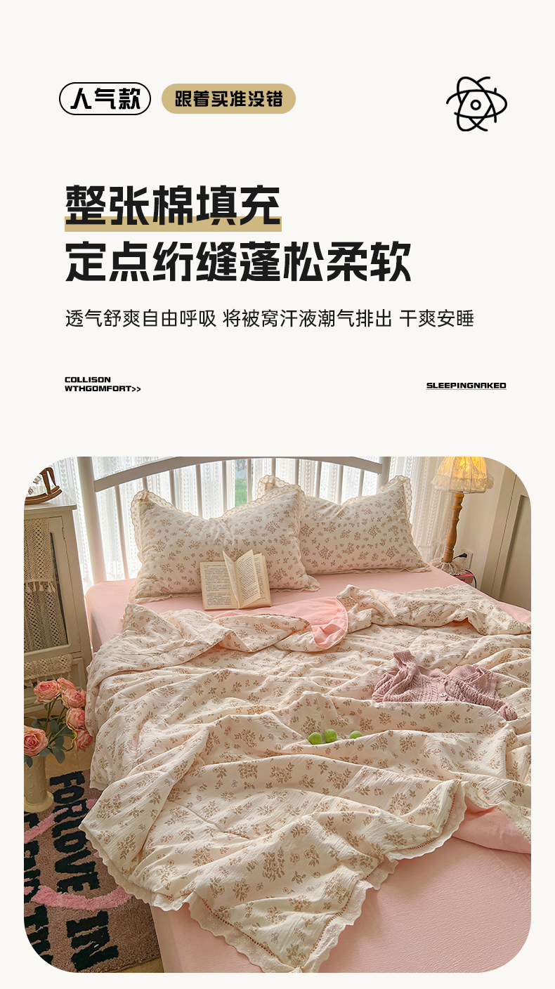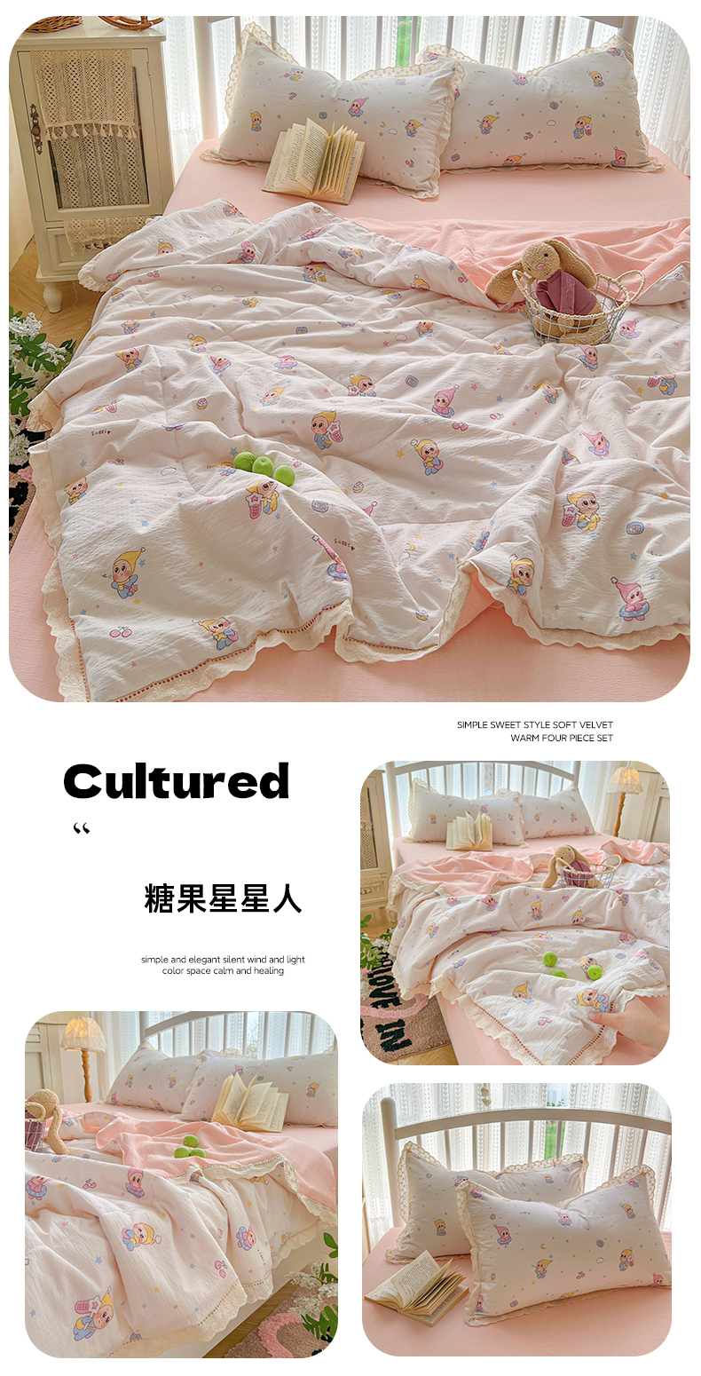 港岛妹妹 2026新款镂空花边夏被 夏被四件套 小木马
