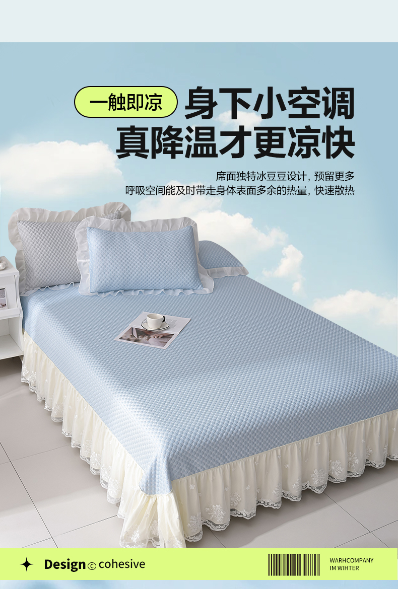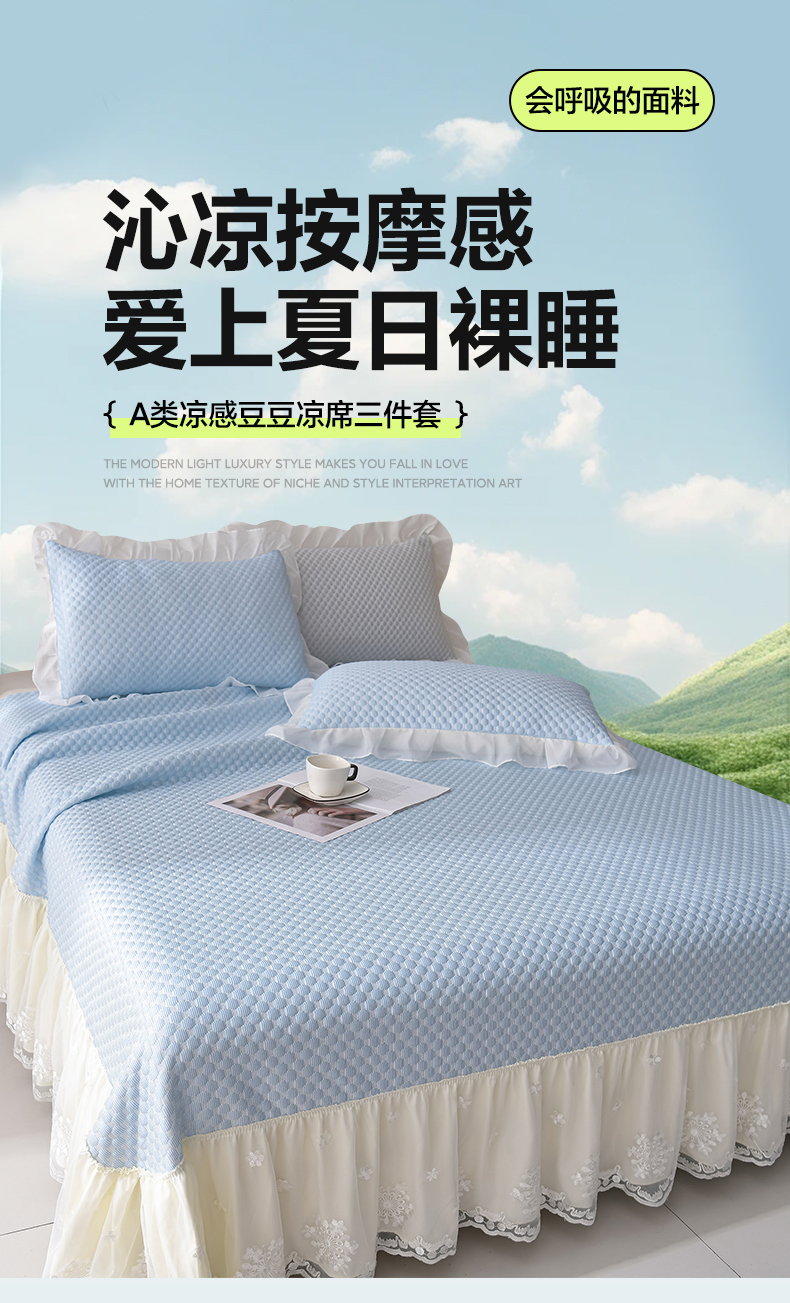 商品名称:席匠 2026新款A类凉感豆豆凉席席子凉席三件套 婴儿蓝