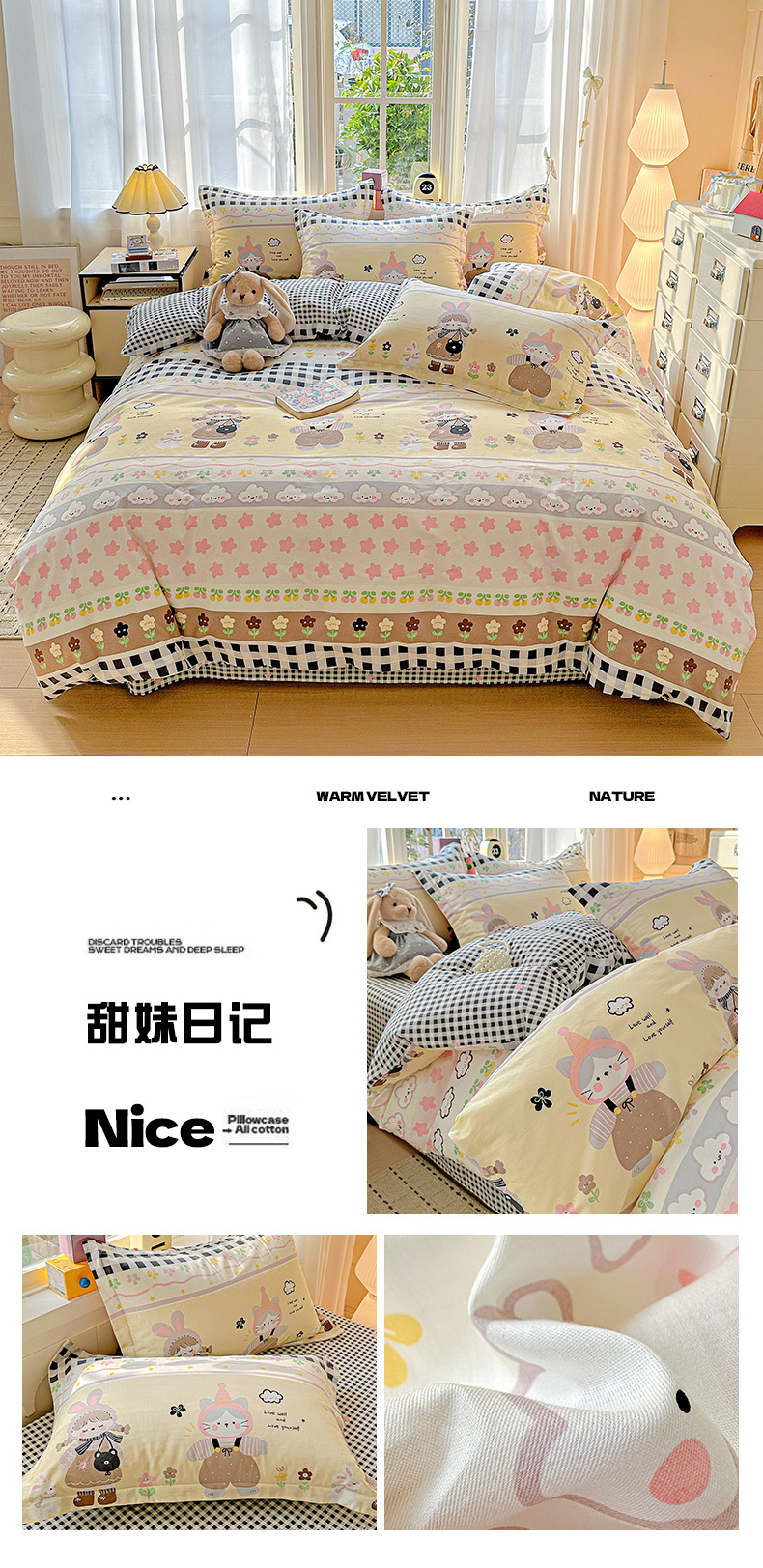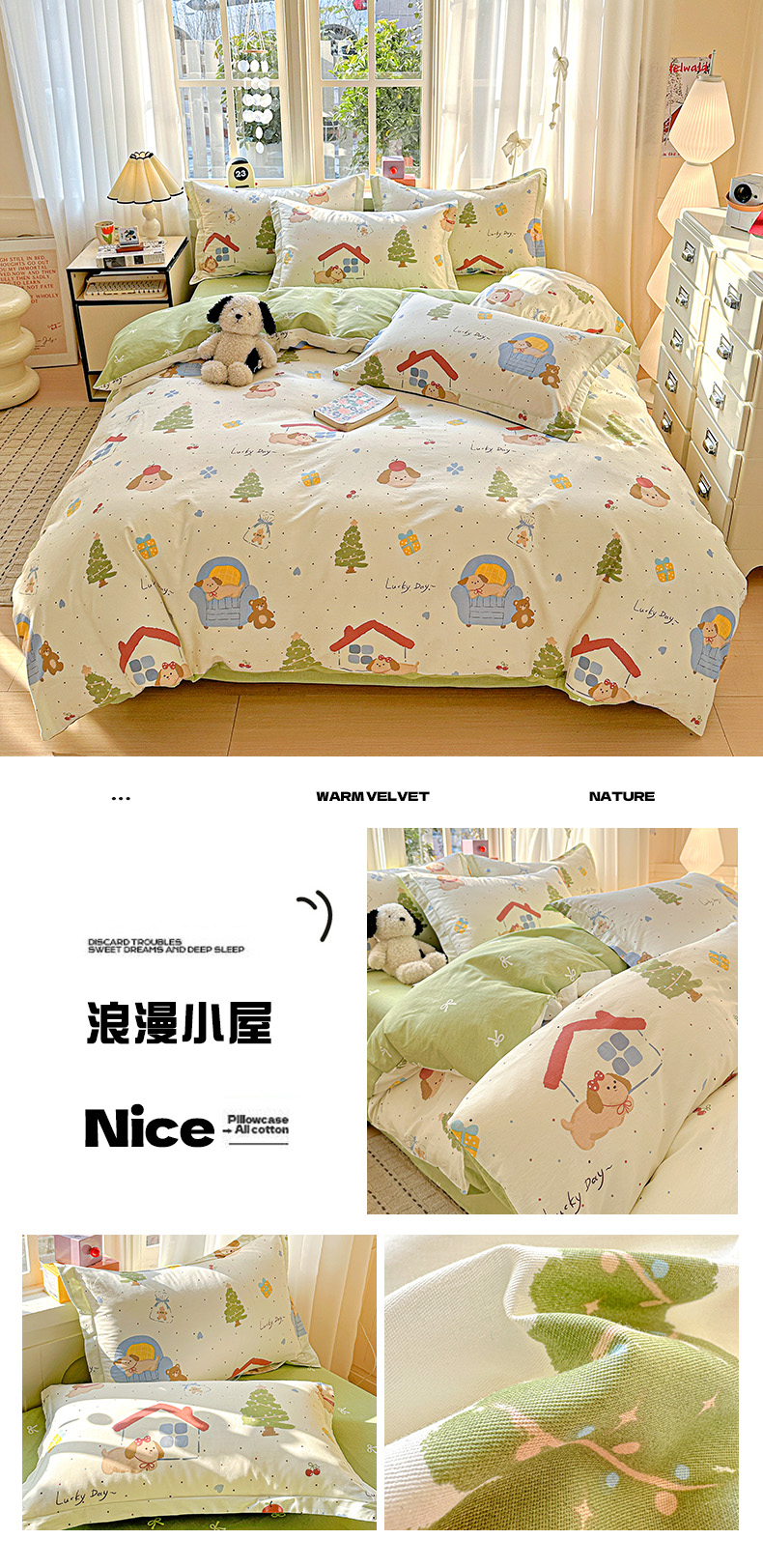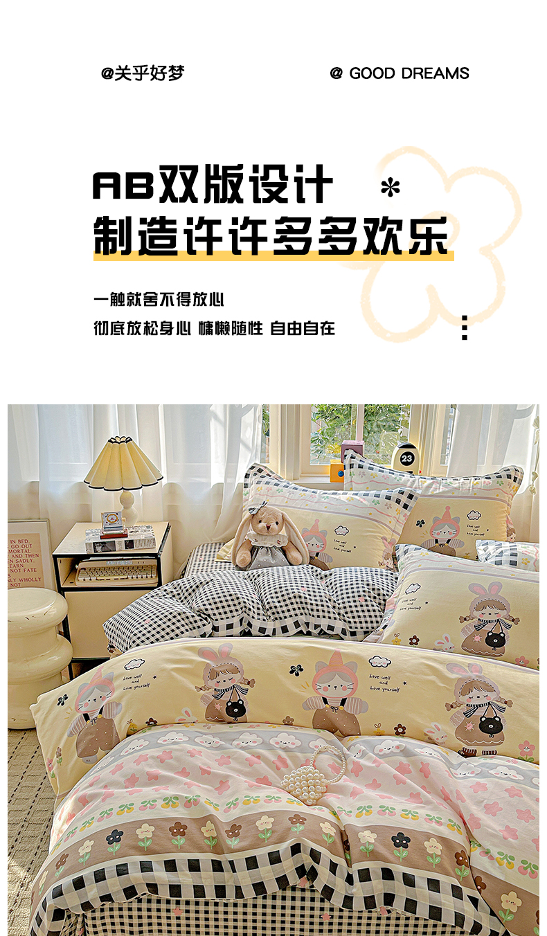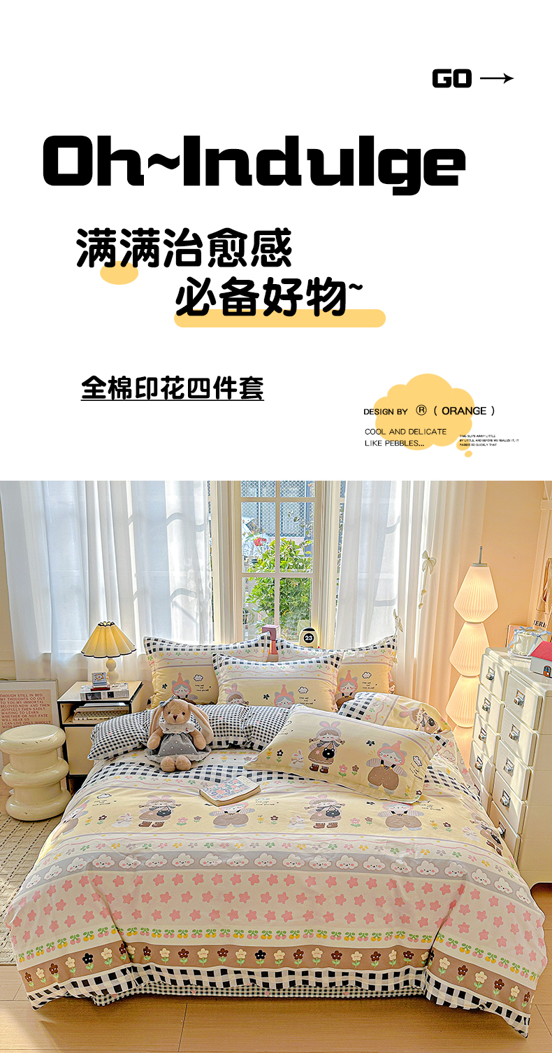 (总)依庭 2025新款高克重全棉纯棉磨毛印花四件套,乐享,奥维斯,贝丽丝,彼得兔,草莓奶昔,茶言妙语,初漫,蝶恋花,朵唯,朵韵,芳盈,飞花令,哈基米,好伙伴,好运熊-咖,好运熊-蓝,红冠象,花色伊人,吉唛,悸动,惊鸿-粉,惊鸿-桔,可爱兔,恐龙告白,酷小狗,快乐星球,蓝色恋人,绿萝,玛雅,曼迪,玫瑰花语,萌车派对,萌宠,莫利格,奶油小狗,南瓜熊,尼彩,帕比,皮皮狗,清新花园,山樱,笙白-桔,甜梦茶语,甜心花语,仙女星辰,小欢喜,星梦乐园,星晚-粉,幸福小熊,幸运熊,寻悦-桔,叶叶情深,叶之恋,叶芝,樱贝,樱絮仙踪,优漫,悠悠仙草,柚见,灼华