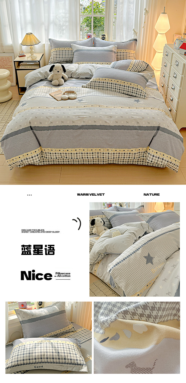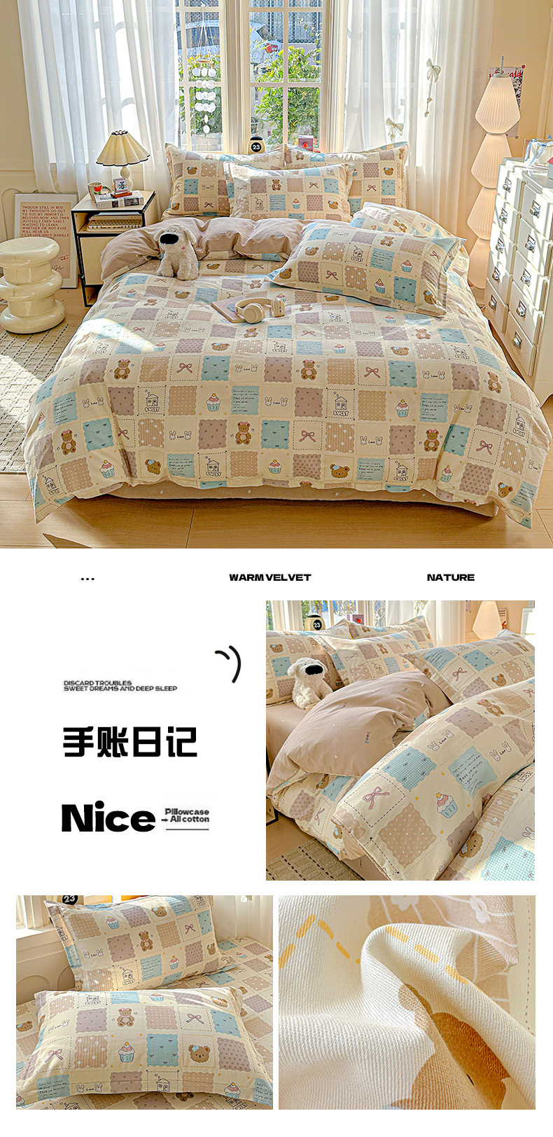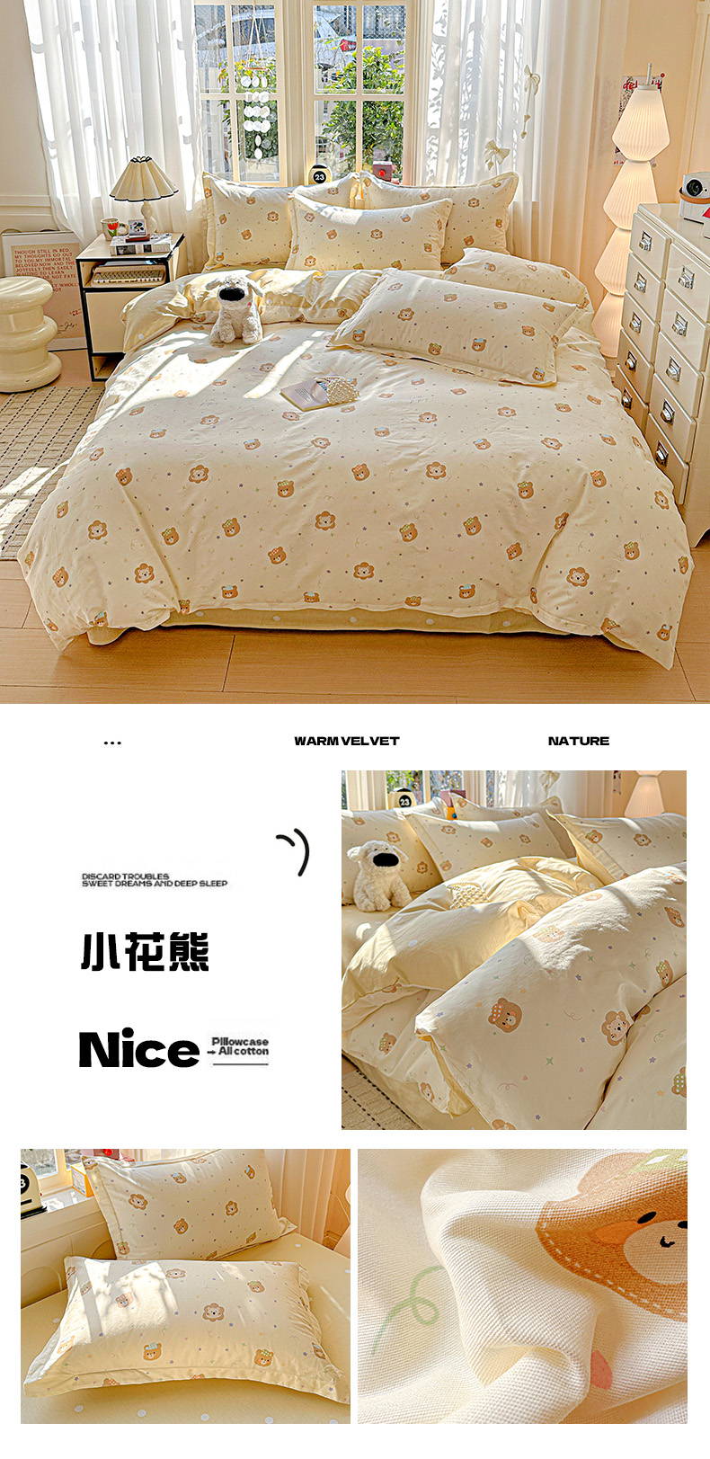 (总)依庭 2025新款高克重全棉纯棉磨毛印花四件套,乐享,奥维斯,贝丽丝,彼得兔,草莓奶昔,茶言妙语,初漫,蝶恋花,朵唯,朵韵,芳盈,飞花令,哈基米,好伙伴,好运熊-咖,好运熊-蓝,红冠象,花色伊人,吉唛,悸动,惊鸿-粉,惊鸿-桔,可爱兔,恐龙告白,酷小狗,快乐星球,蓝色恋人,绿萝,玛雅,曼迪,玫瑰花语,萌车派对,萌宠,莫利格,奶油小狗,南瓜熊,尼彩,帕比,皮皮狗,清新花园,山樱,笙白-桔,甜梦茶语,甜心花语,仙女星辰,小欢喜,星梦乐园,星晚-粉,幸福小熊,幸运熊,寻悦-桔,叶叶情深,叶之恋,叶芝,樱贝,樱絮仙踪,优漫,悠悠仙草,柚见,灼华
