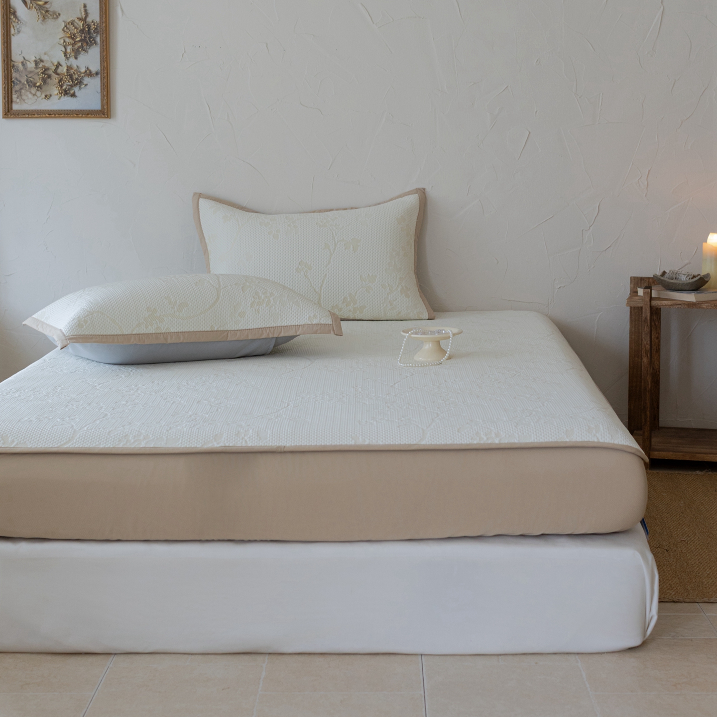 商品名称:云上 2026新款冷萃丝三明治凉感席凉席席子-花漾系列 花漾床笠款-米黄