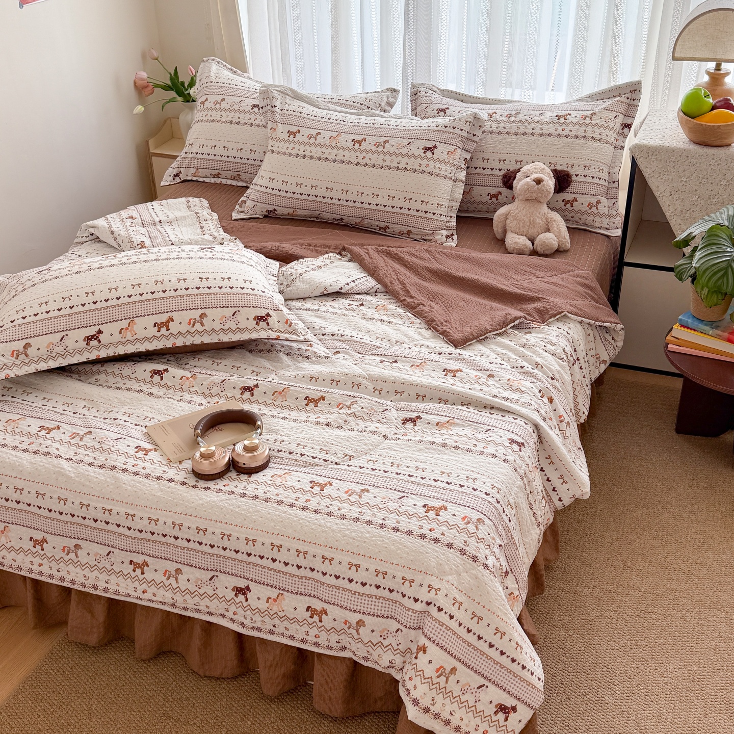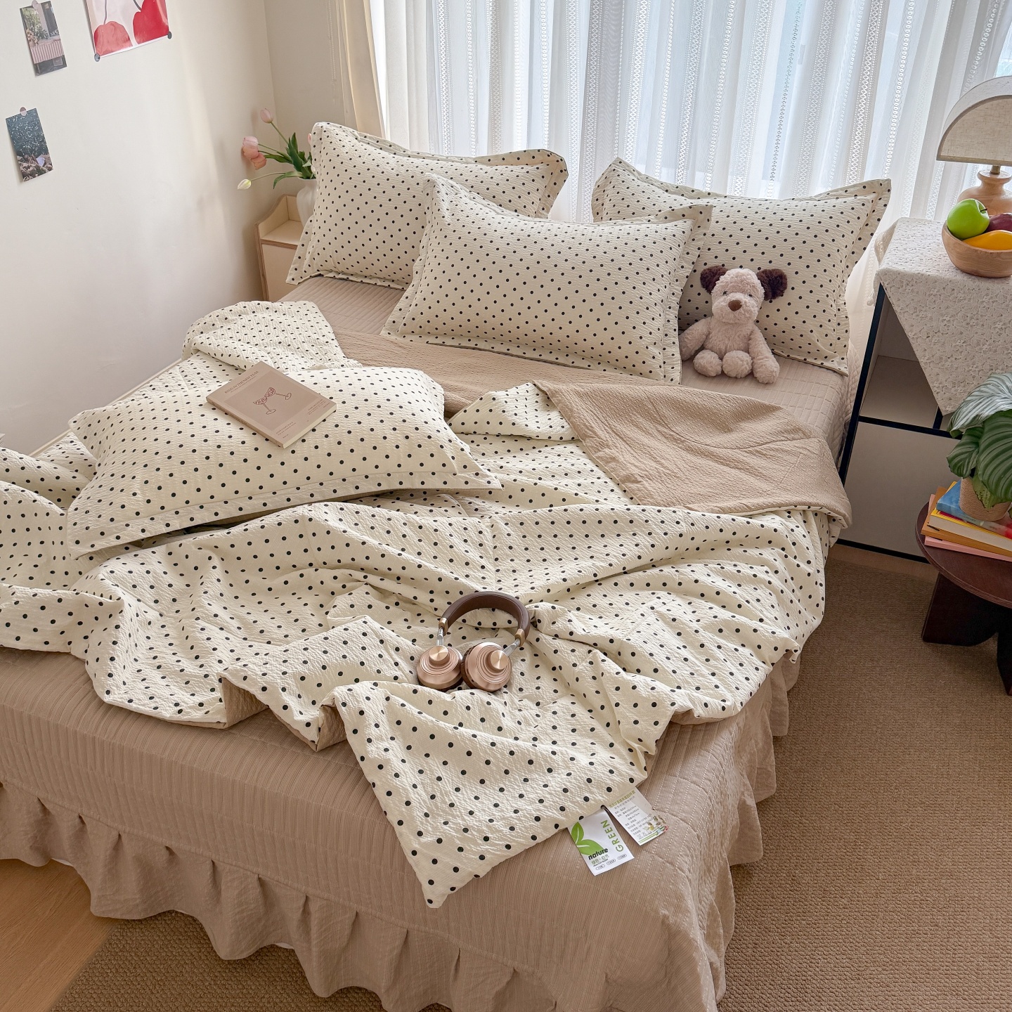 (总)禾沐 2026新款泡芙棉泡芙纱夏被四件套,爱心点点,波点,费尔岛小狗,古典格,红果兔兔,花间娃娃,灰爱心,丽莎,栗色木马纹,蜜桃小兔,描线猫,柔诗意,甜桃心,星芒凯蒂,秀妍,只闻花香,仲夏,组合