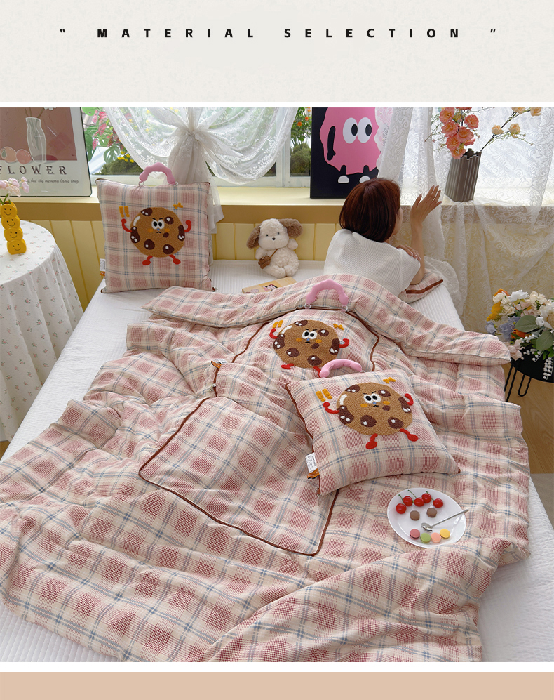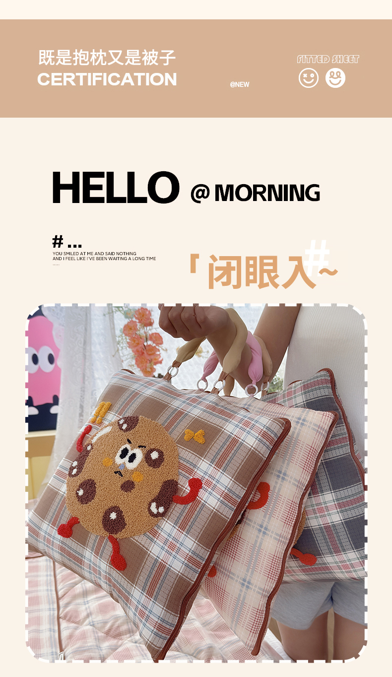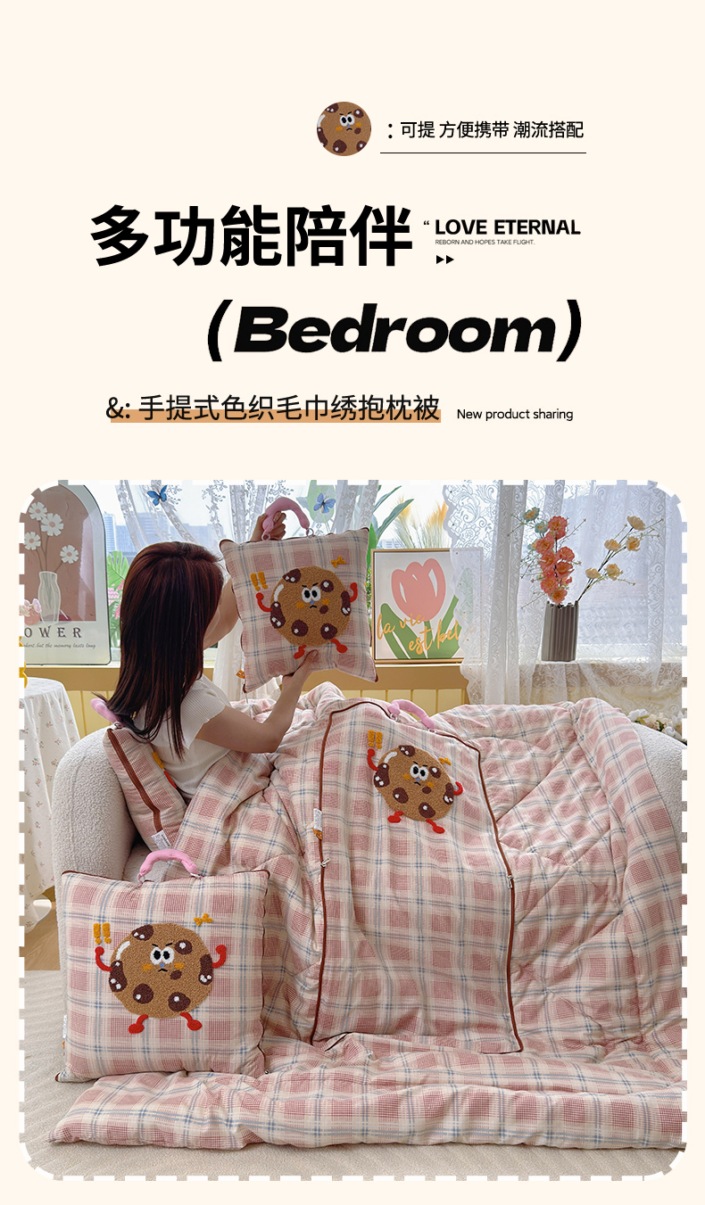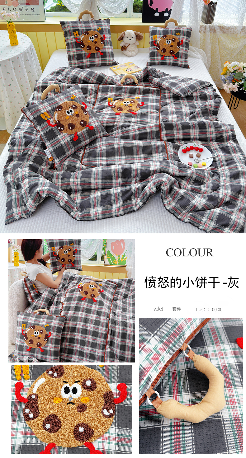 (总)宝马家纺(原梦童画) 2026新款手提式色织毛巾绣愤怒的小饼干抱枕被,愤怒的小饼干 灰,愤怒的小饼干 粉,愤怒的小饼干 咖