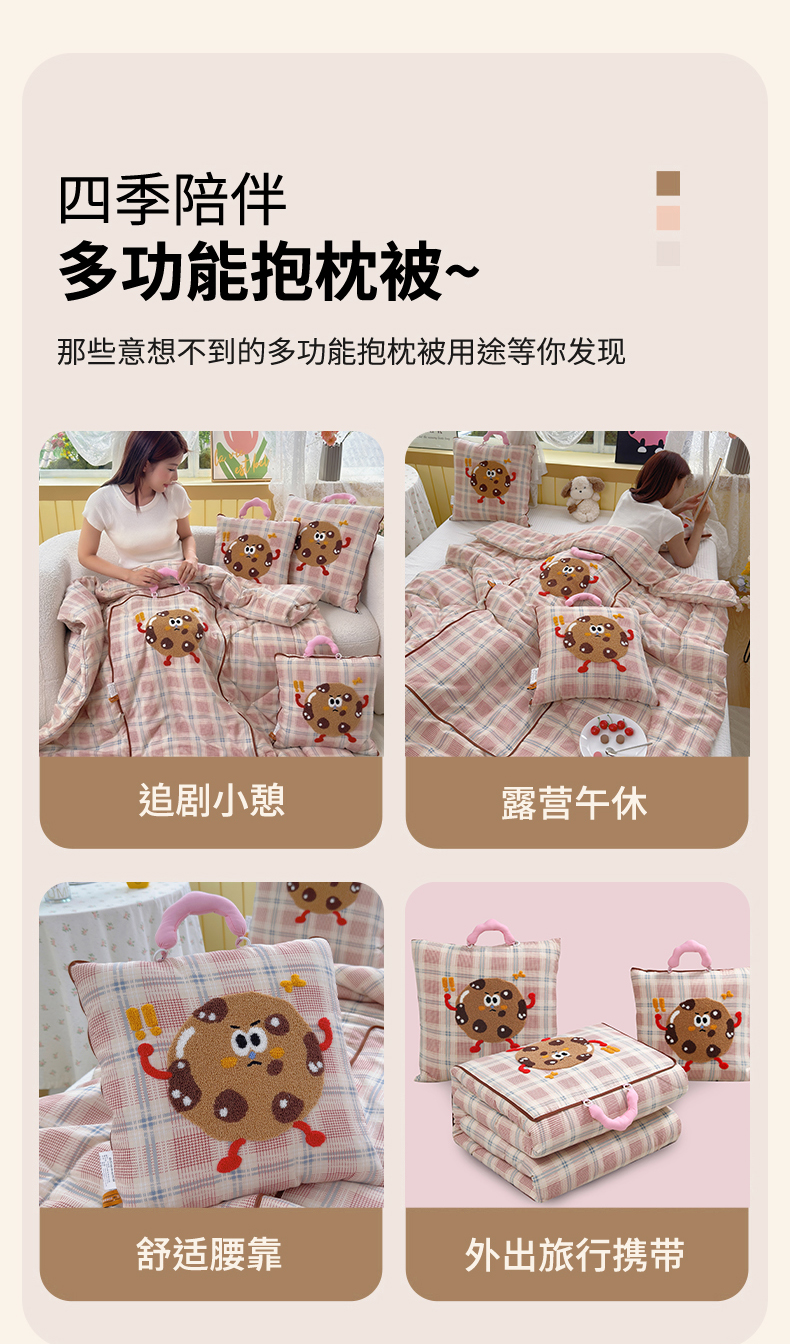 (总)宝马家纺 2024新款小饼干加厚抱枕被,曲奇饼干-灰,曲奇饼干-卡其,曲奇饼干-棕