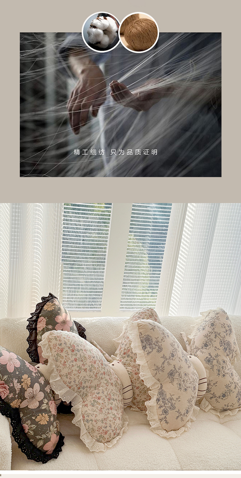 蔻眠 花边款棉麻刺绣蝴蝶抱枕靠枕异型枕芯 法式玫瑰