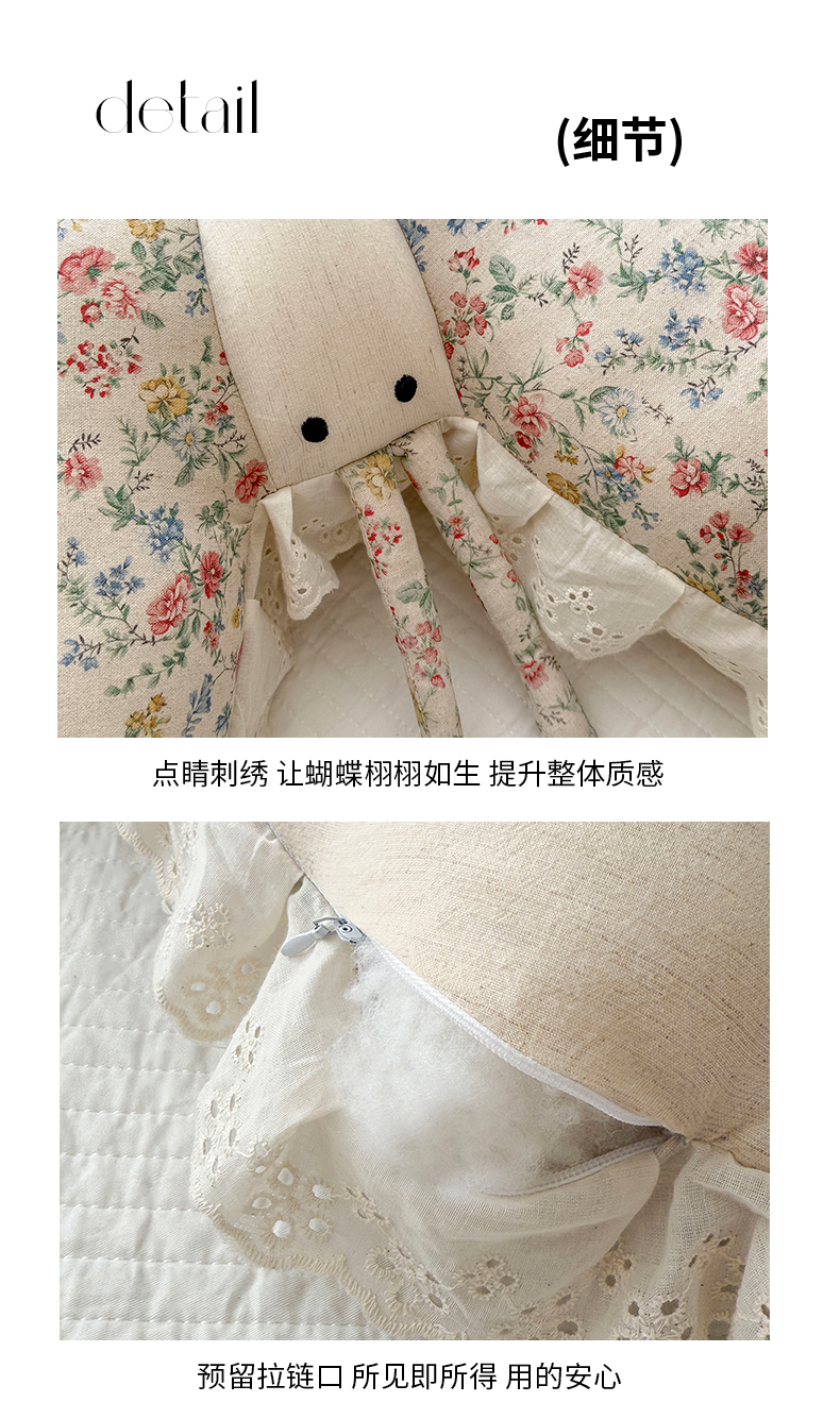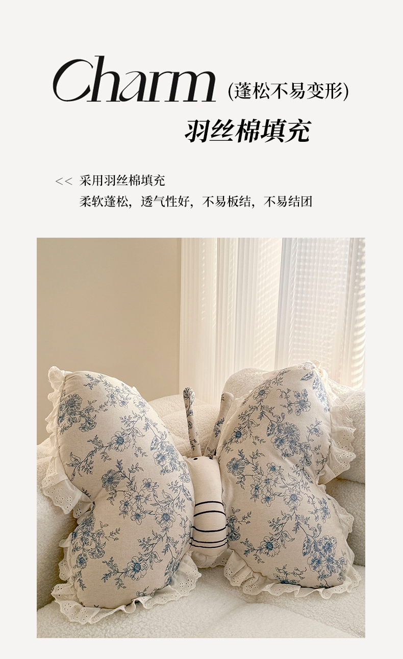 商品名称:蔻眠 花边款棉麻刺绣蝴蝶抱枕靠枕异型枕芯 法式玫瑰