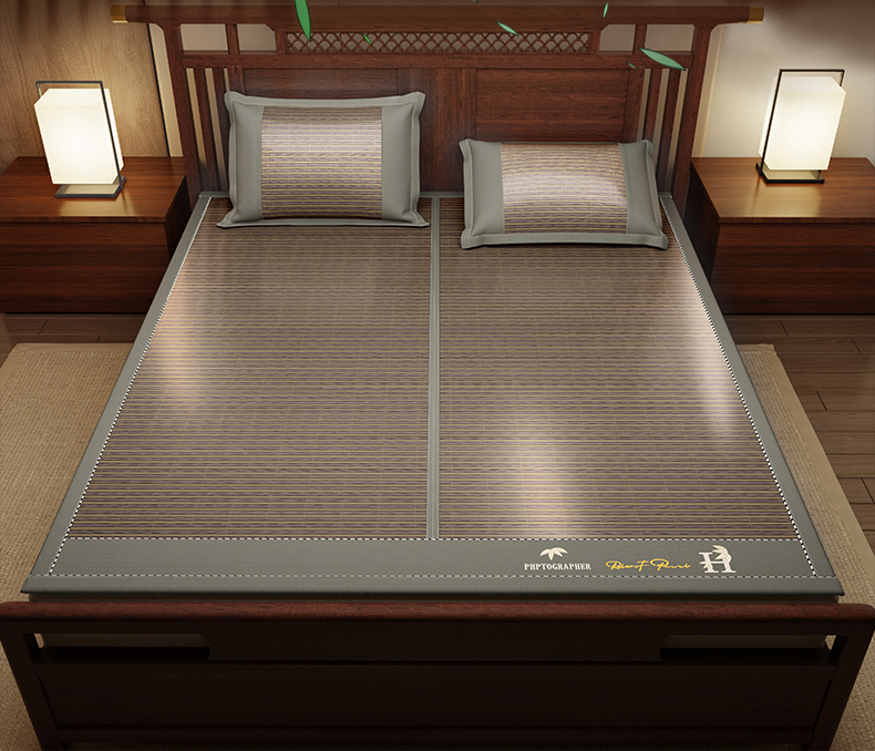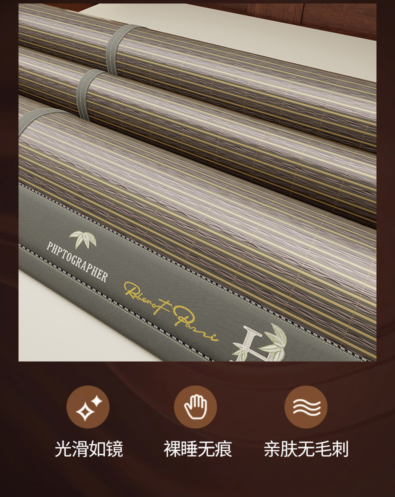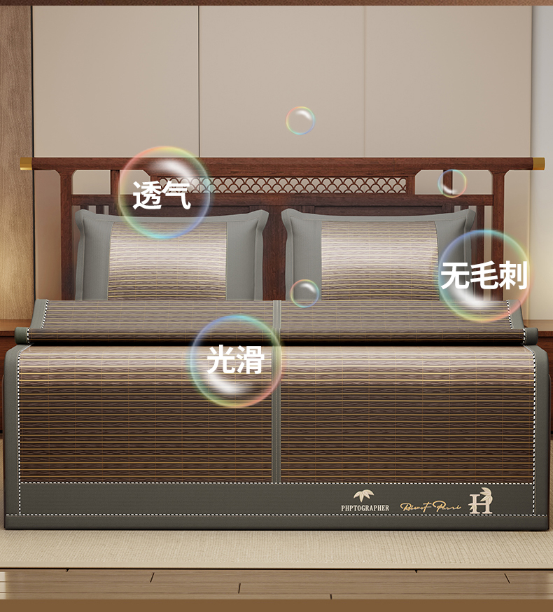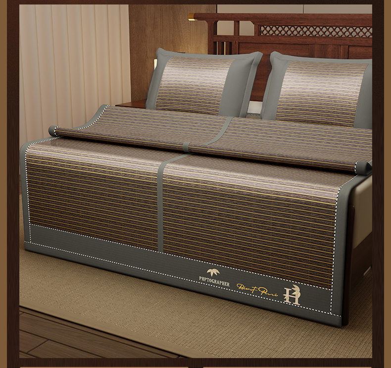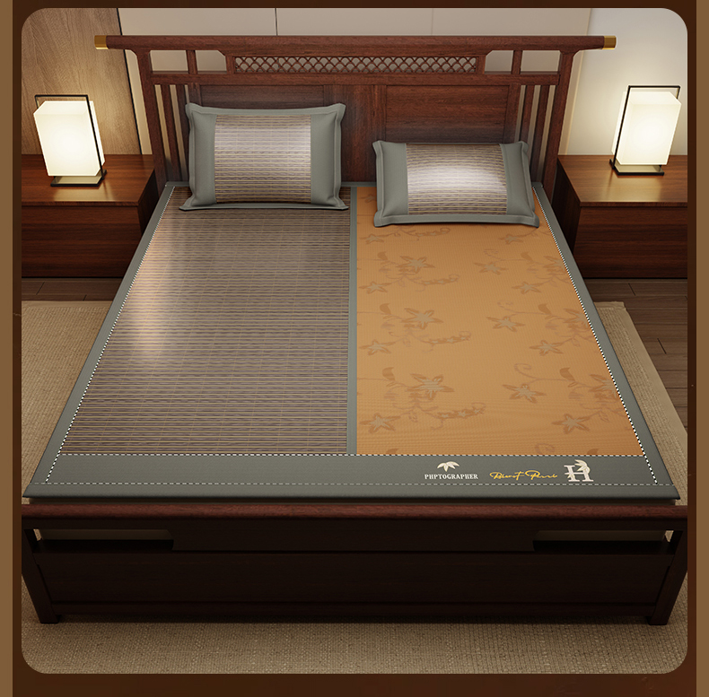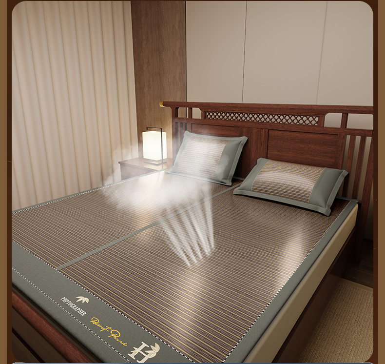 (总)宜派家纺 2026新款双面可用竹席,木纹清澜-灰,木纹清澜-咖,木纹清澜-绿,水磨镜面,丝竹之音,碳化竹影