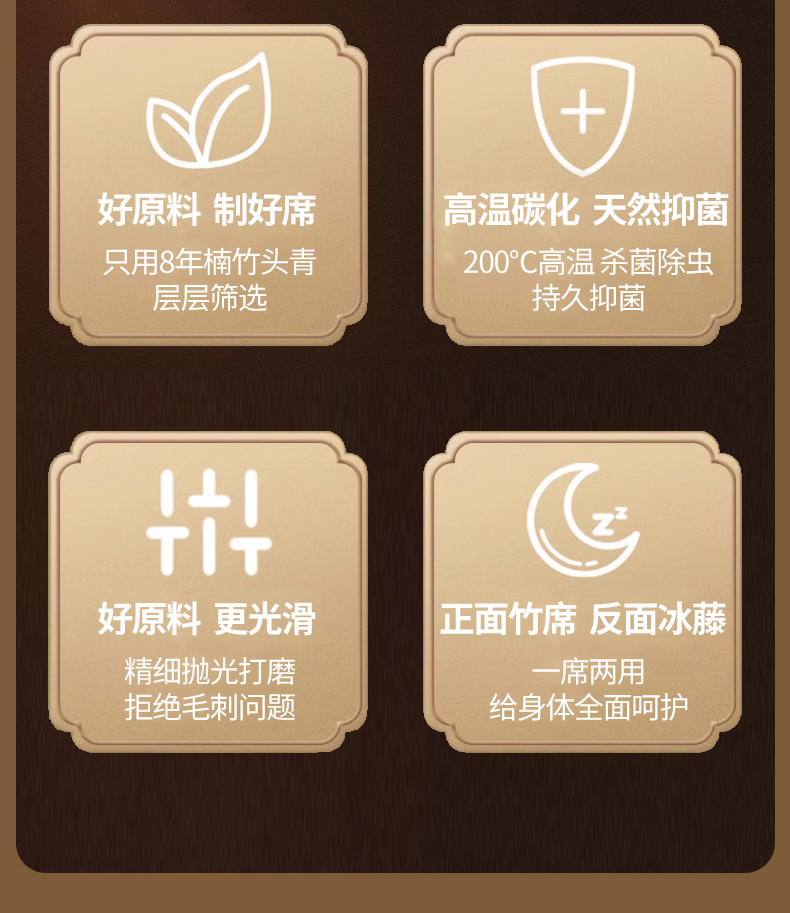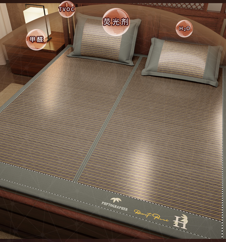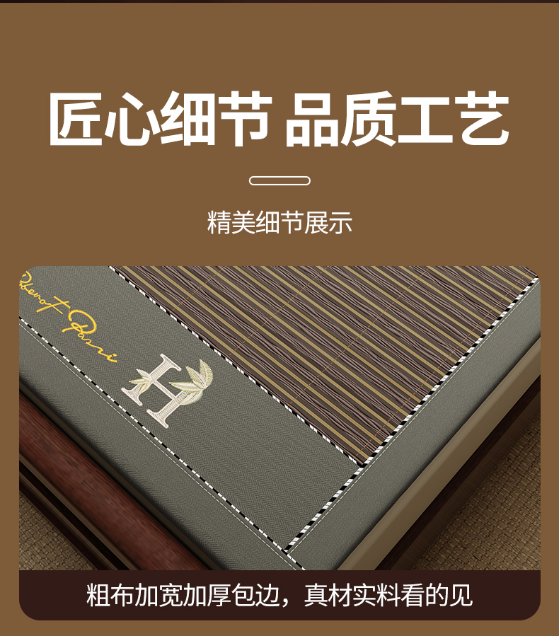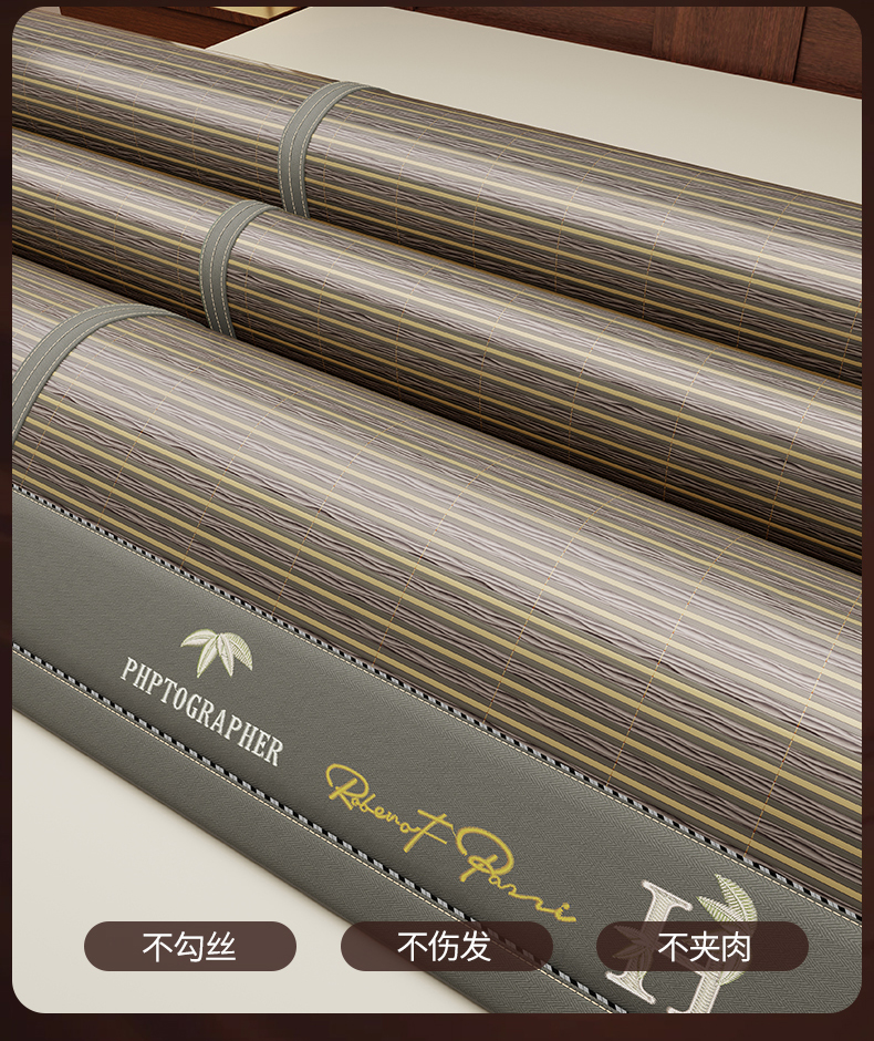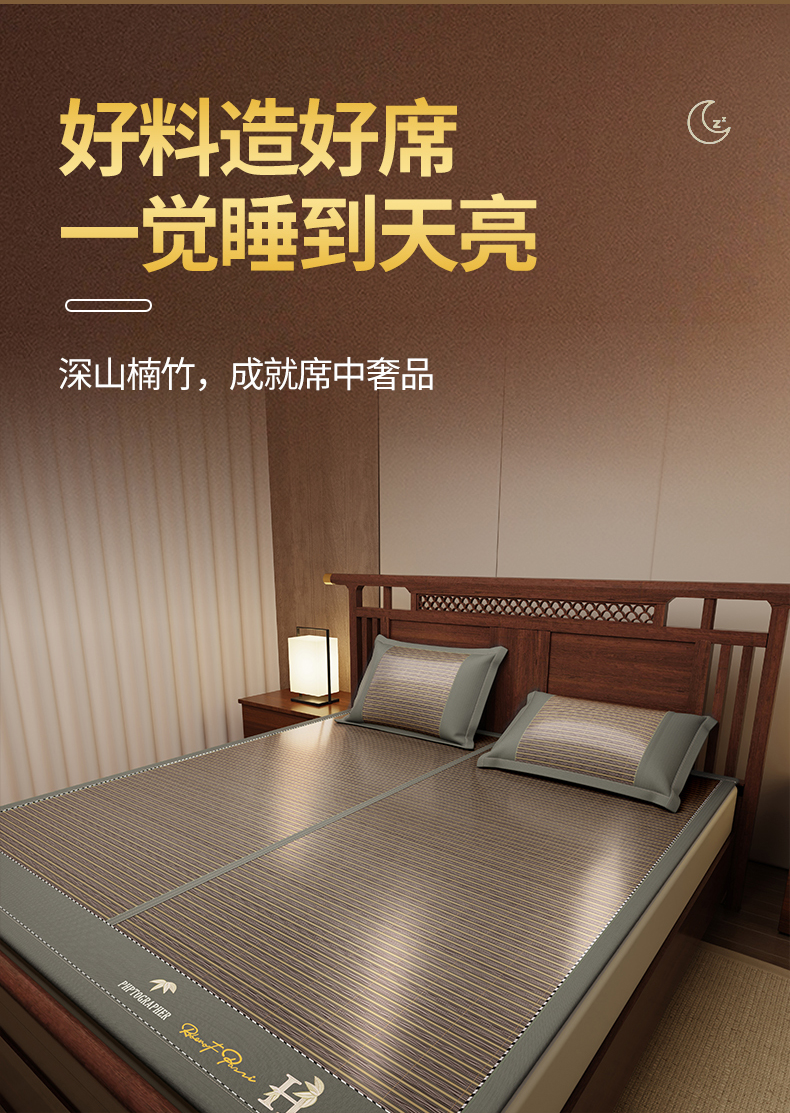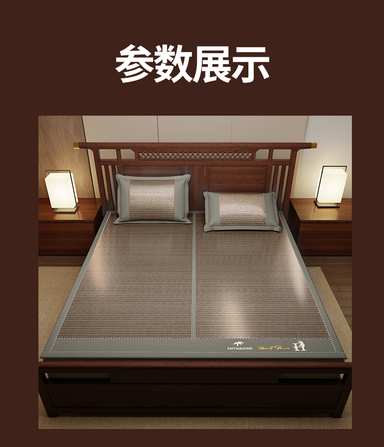 (总)宜派家纺 2026新款双面可用竹席,木纹清澜-灰,木纹清澜-咖,木纹清澜-绿,水磨镜面,丝竹之音,碳化竹影