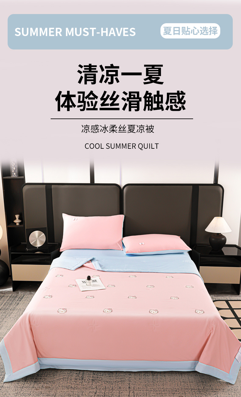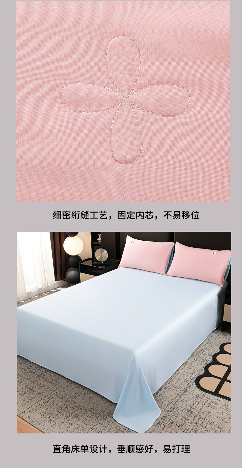 当前位置: 91家纺网 > 商品网购 > 床品套件 > 四件套 > 夏被四件套 > 佳鸿家纺 2026新款凉感冰柔丝刺绣手包边夏凉被夏被四件套-场景二 粉蓝kt