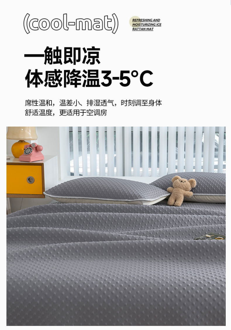 商品名称:(总)默忆 2026新款3D轻奢风A类直播网红热款凉感丝冰豆豆三明治复合床单款凉席两件套三件套