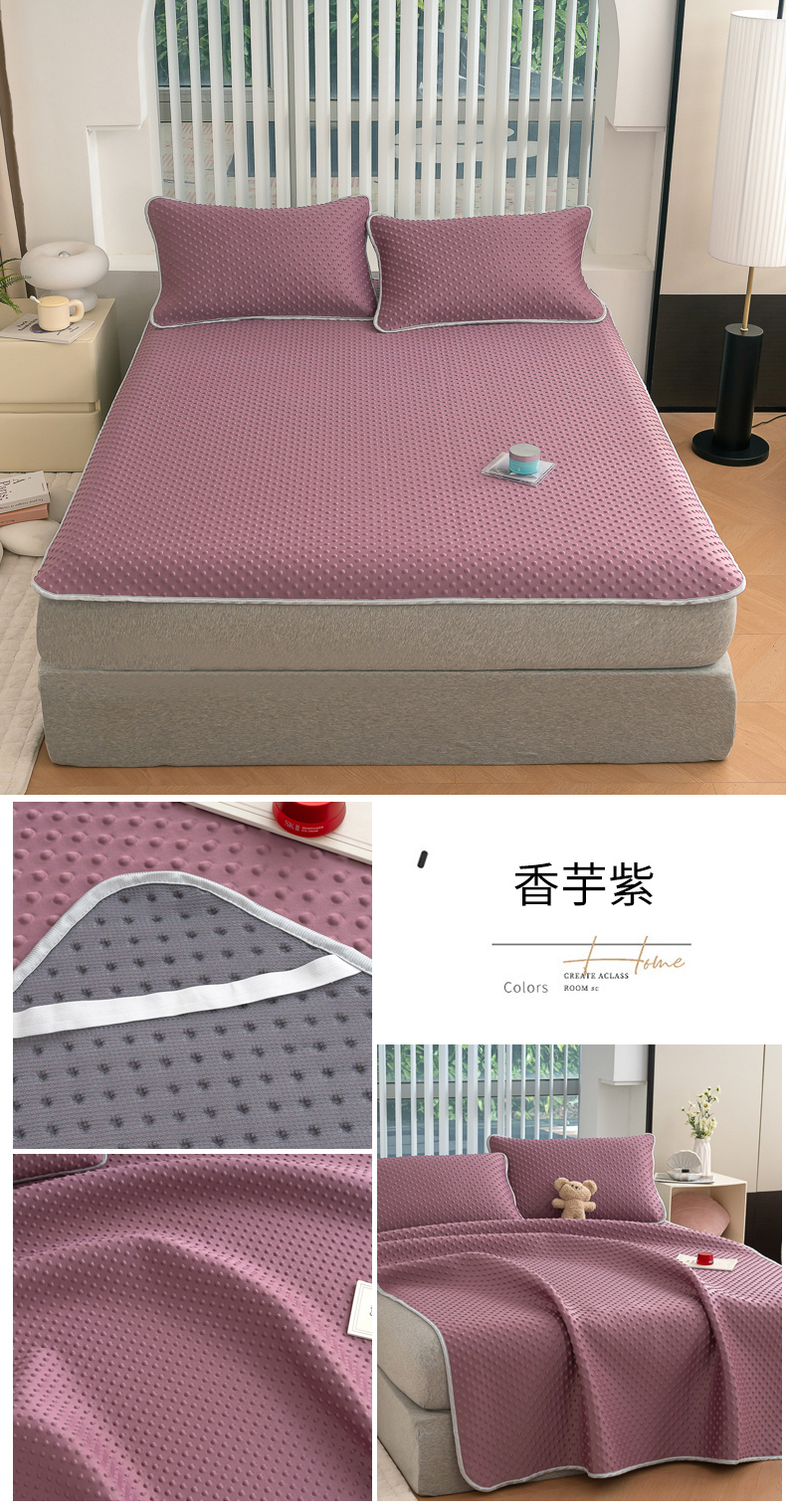 (总)默忆 2026新款3DA类直播网红热款凉感丝冰豆豆三明治复合床裙款凉席三件套,果绿,贵族灰,孔雀蓝,墨绿,时尚粉,天空蓝,香芋紫,熏衣紫