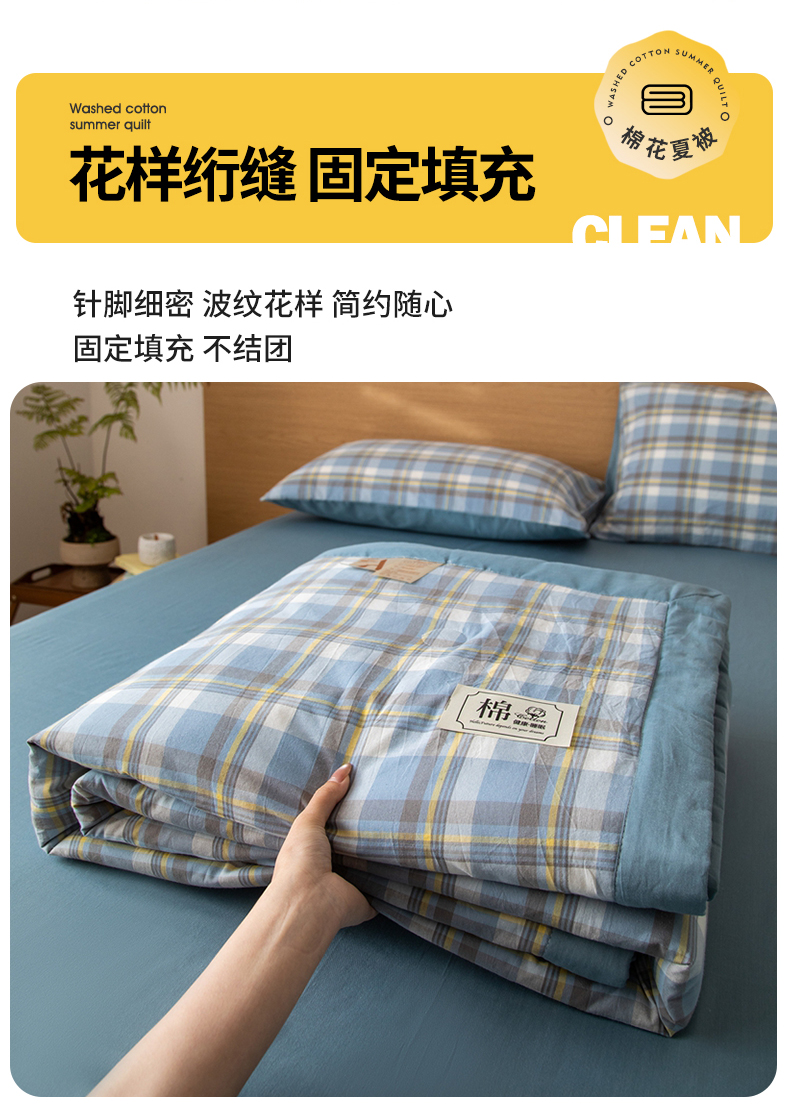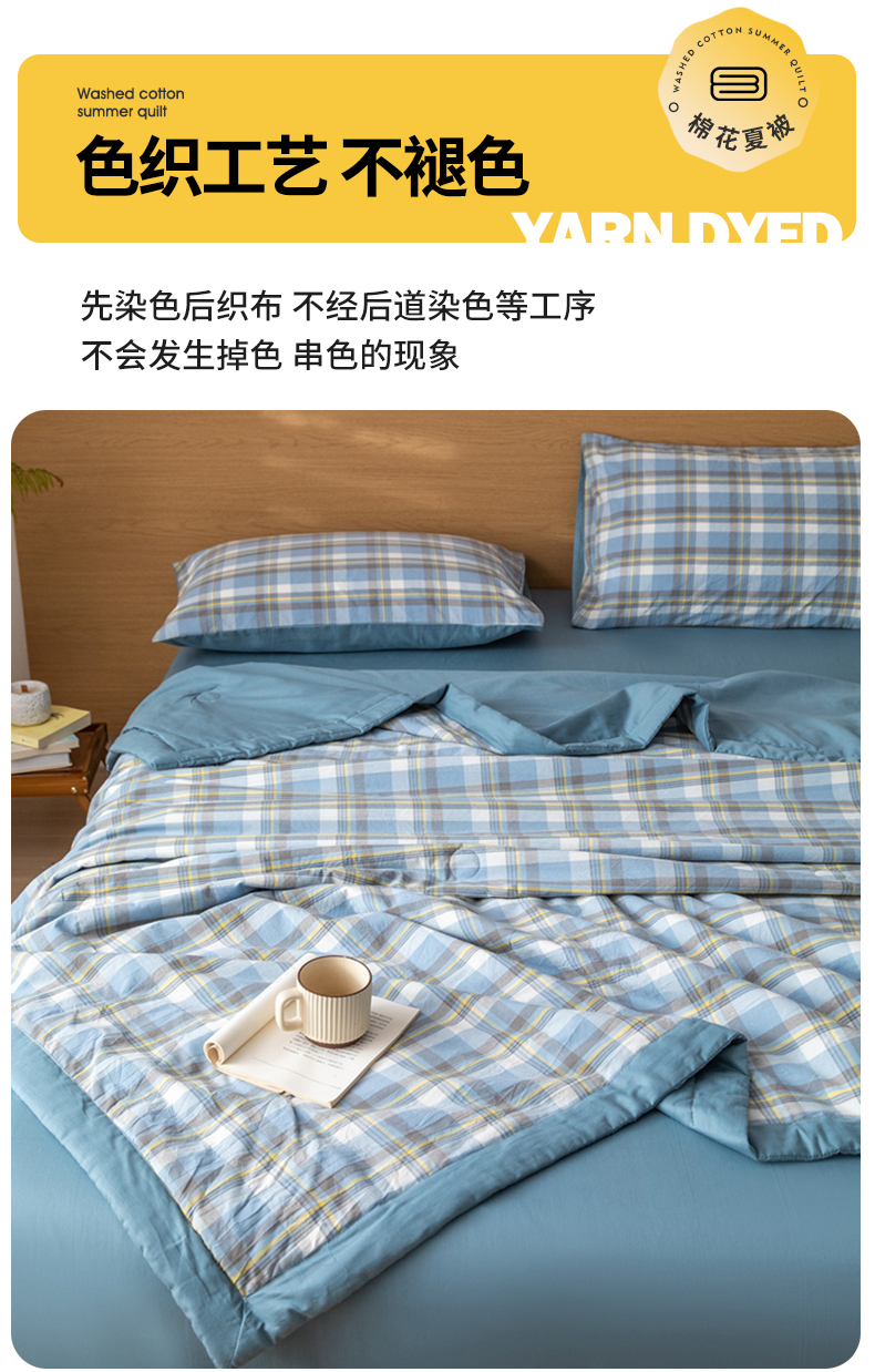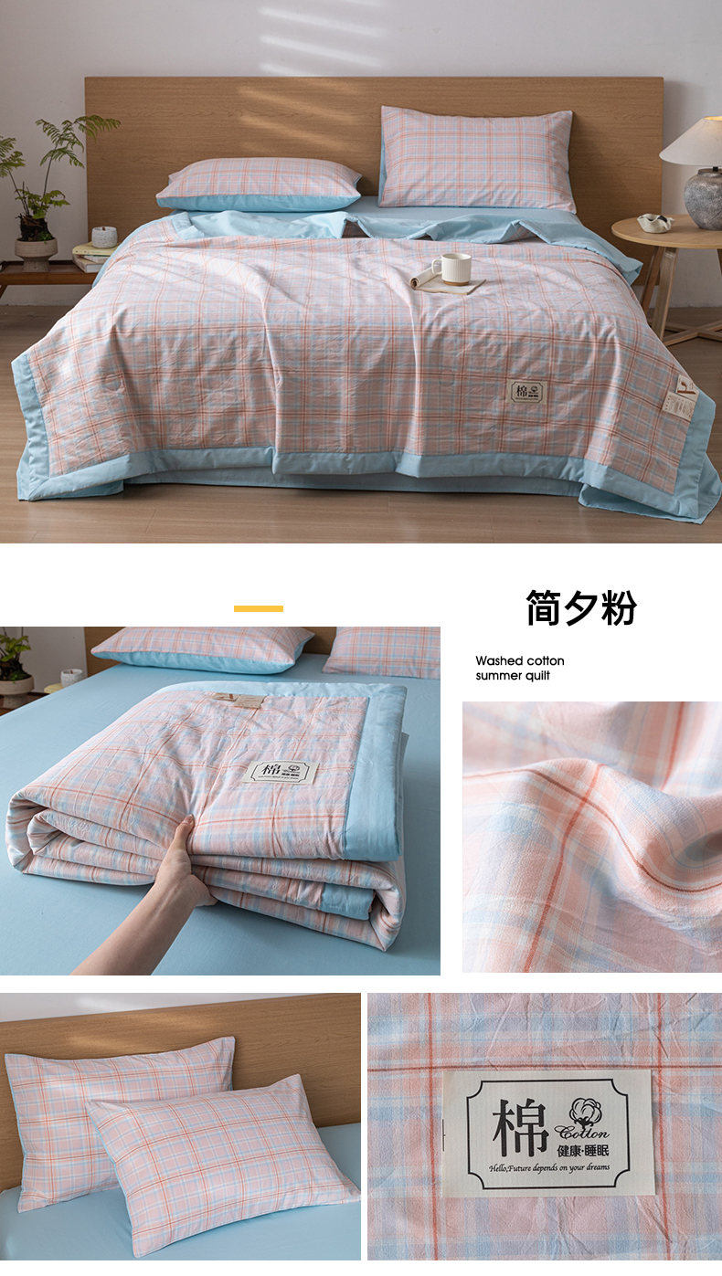 (总)安琪家纺 2026春夏新款色织水洗棉棉花夏被夏凉被空调被,简夕蓝,简夕粉,咖小格,蓝小格,密格蓝,中格粉