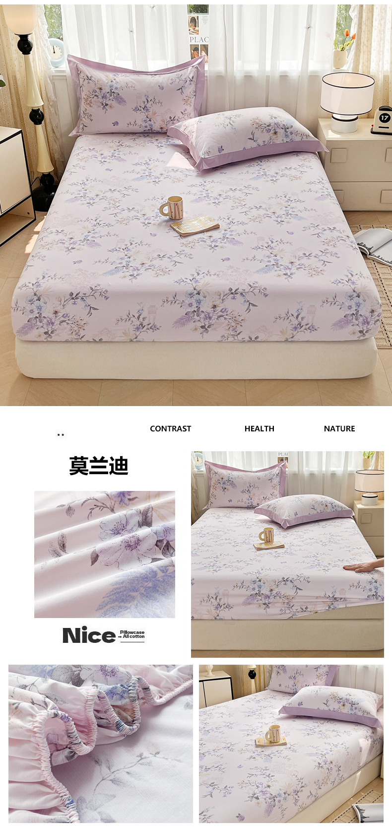 商品名称:(总)慕木家纺 2026新款A类纯色印花慕丝棉床笠系列(抽空压缩可供跨境)(提供买家秀)