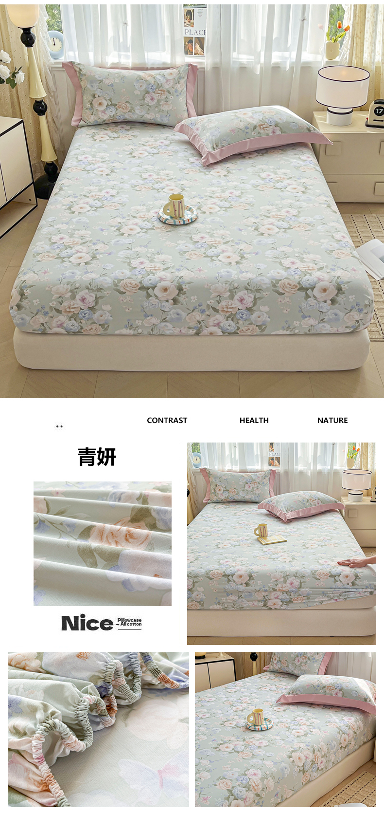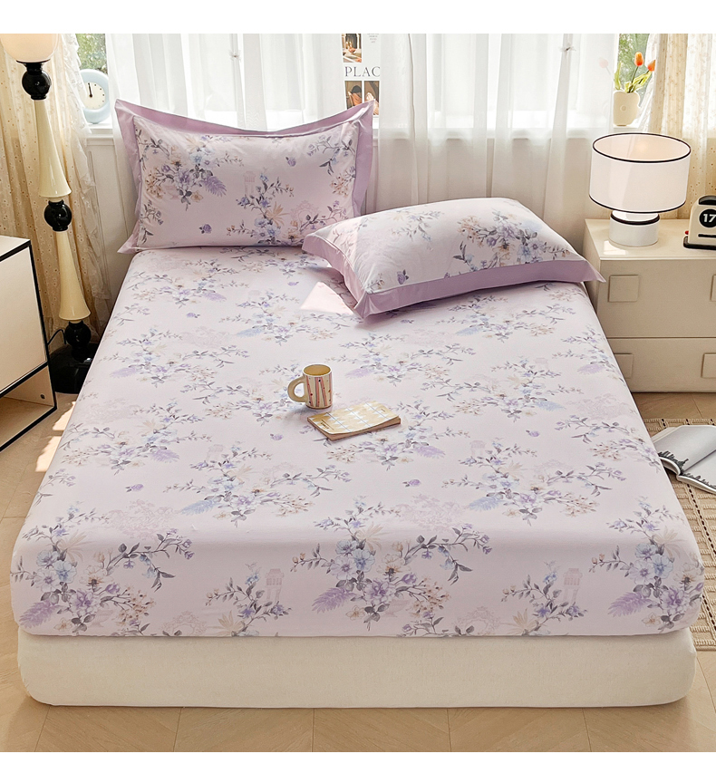 慕木家纺 2026新款A类纯色印花慕丝棉床笠系列(抽空压缩可供跨境)(提供买家秀) 清漫